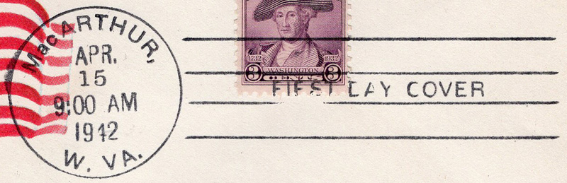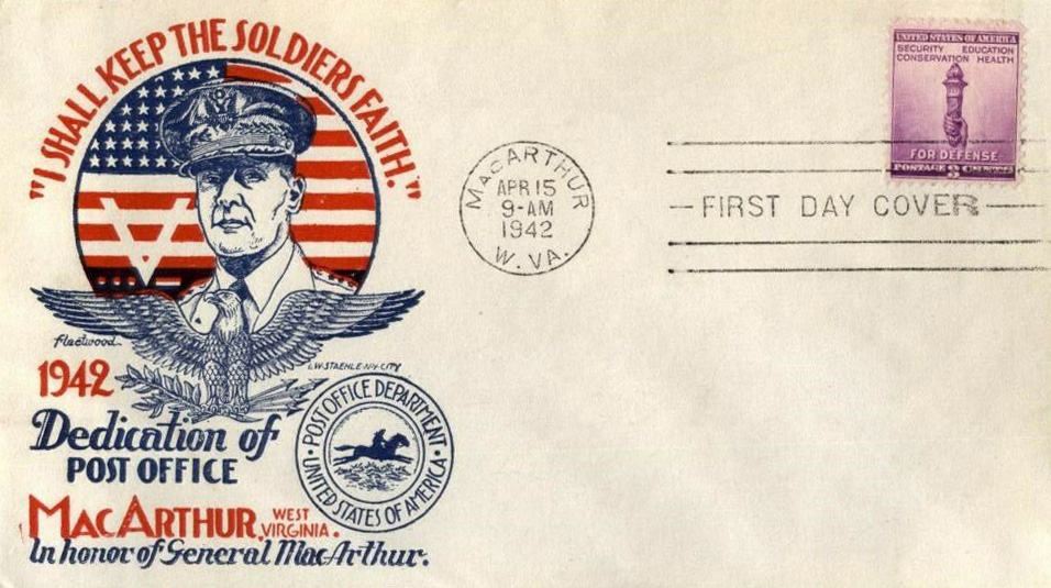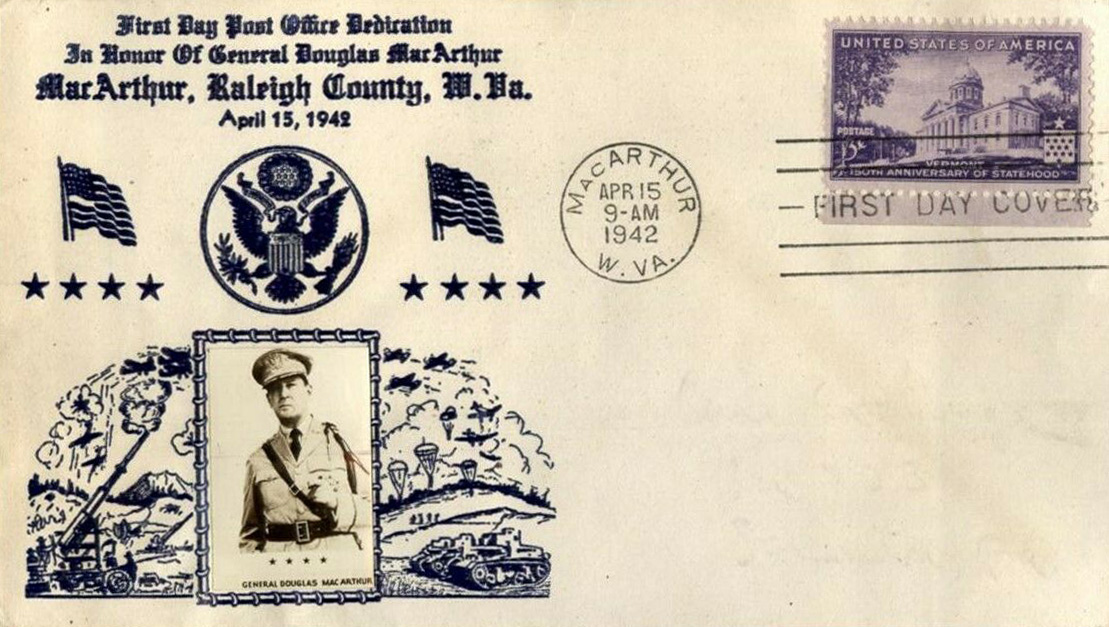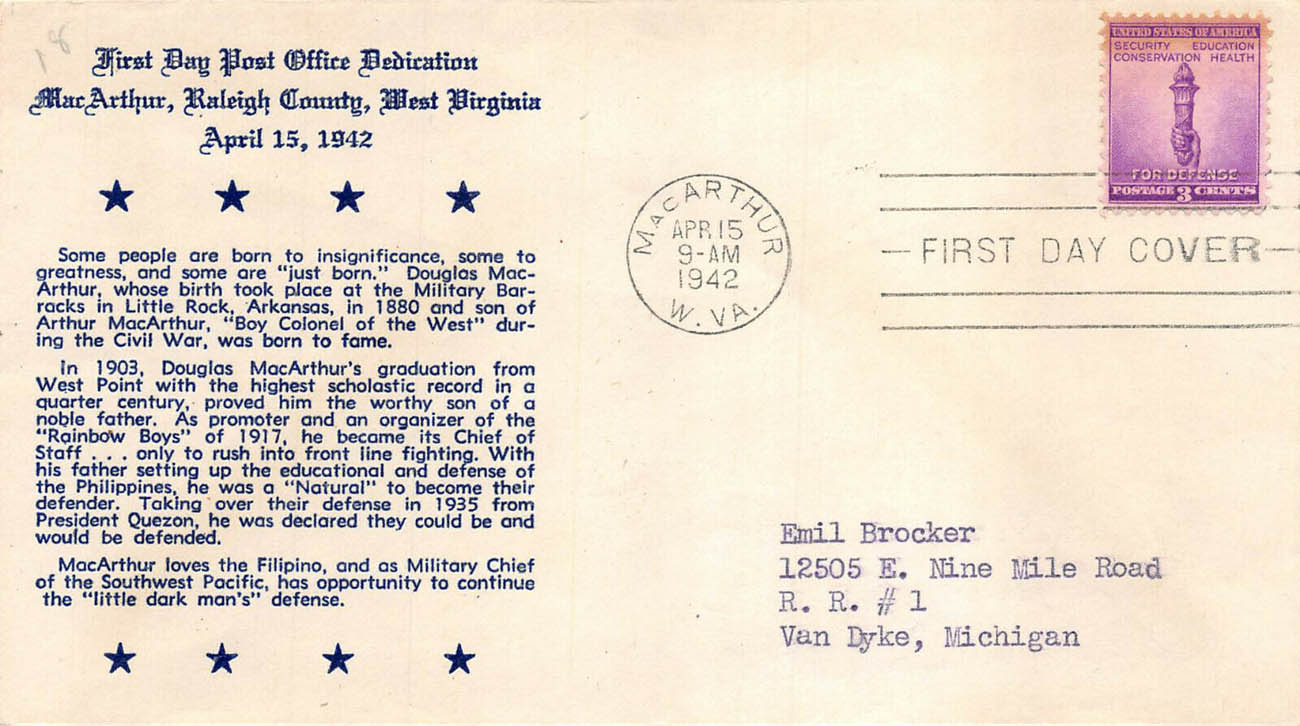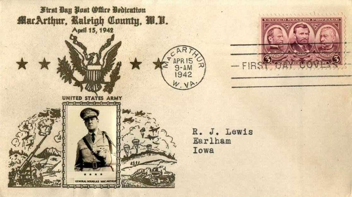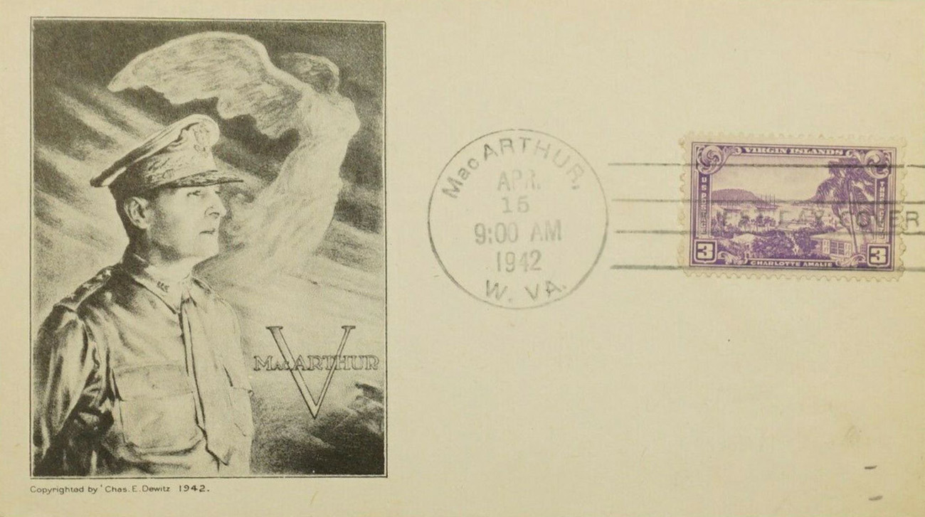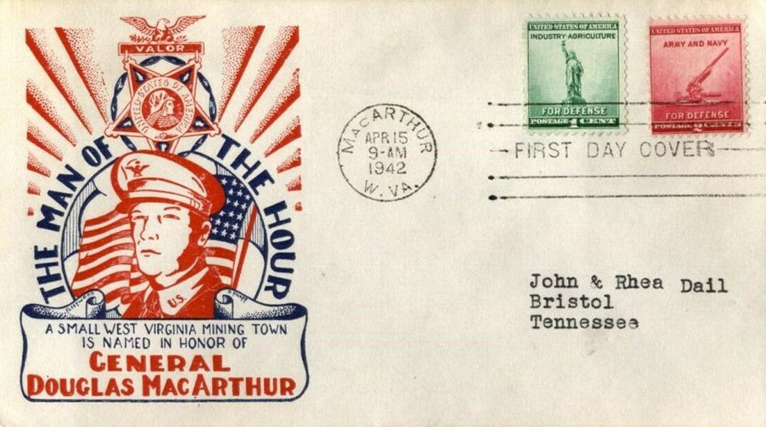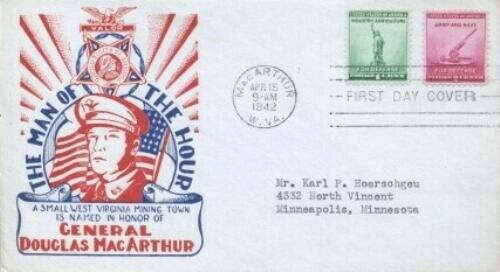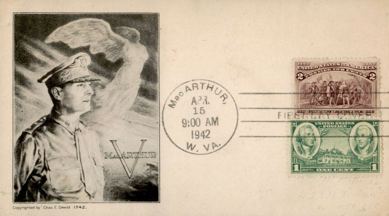 "April 15, 1942, MacArthur (VA) First Day Covers" [Sic (WV), Post Office Dedication]