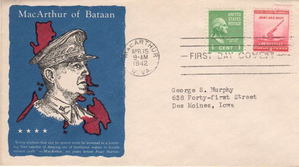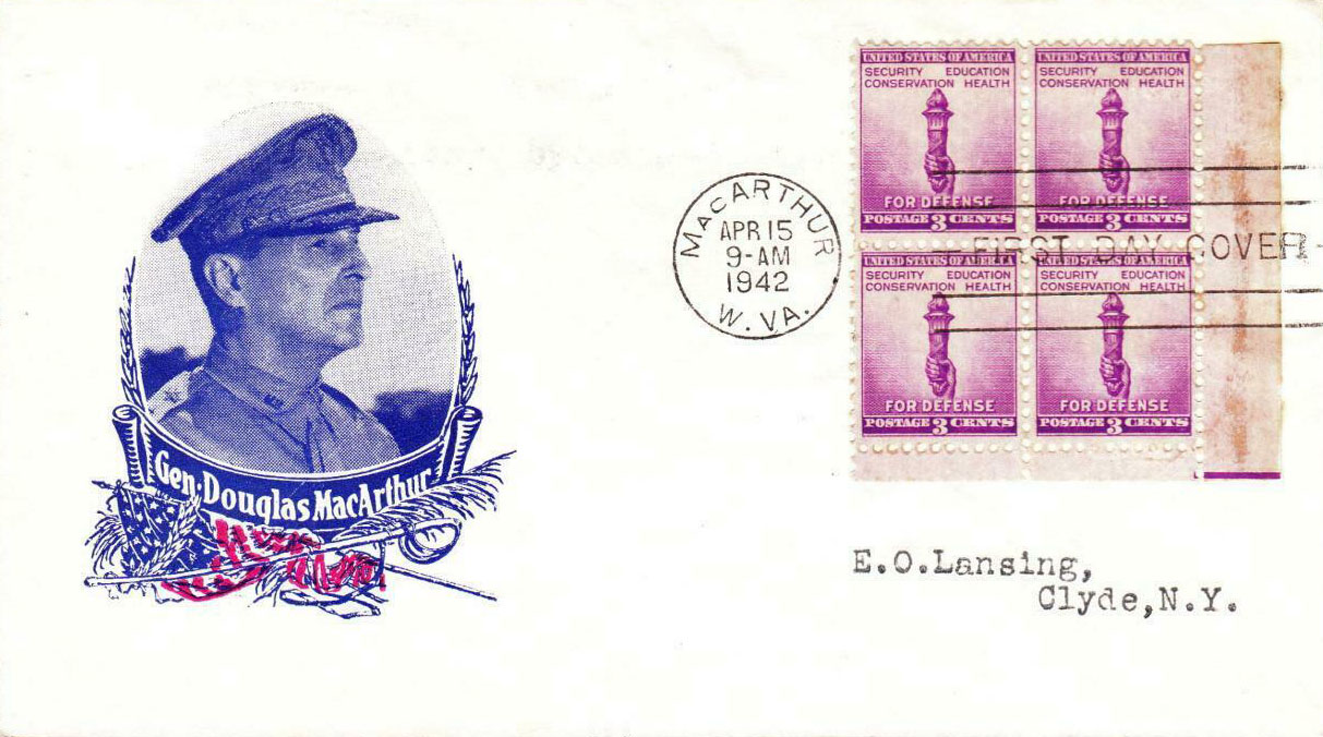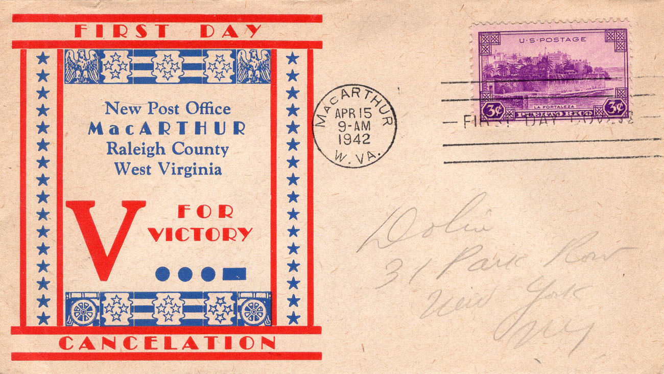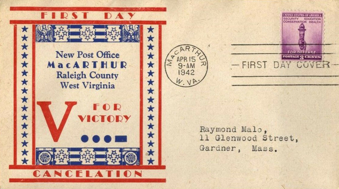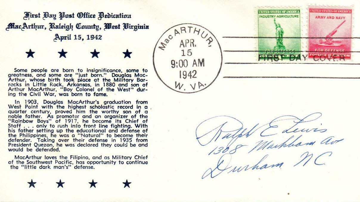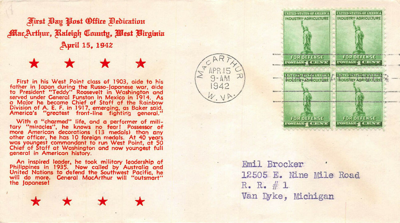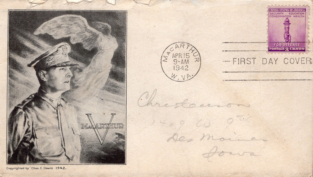 "April 15, 1942, MacArthur (VA) First Day Covers" [Sic (WV), Post Office Dedication]