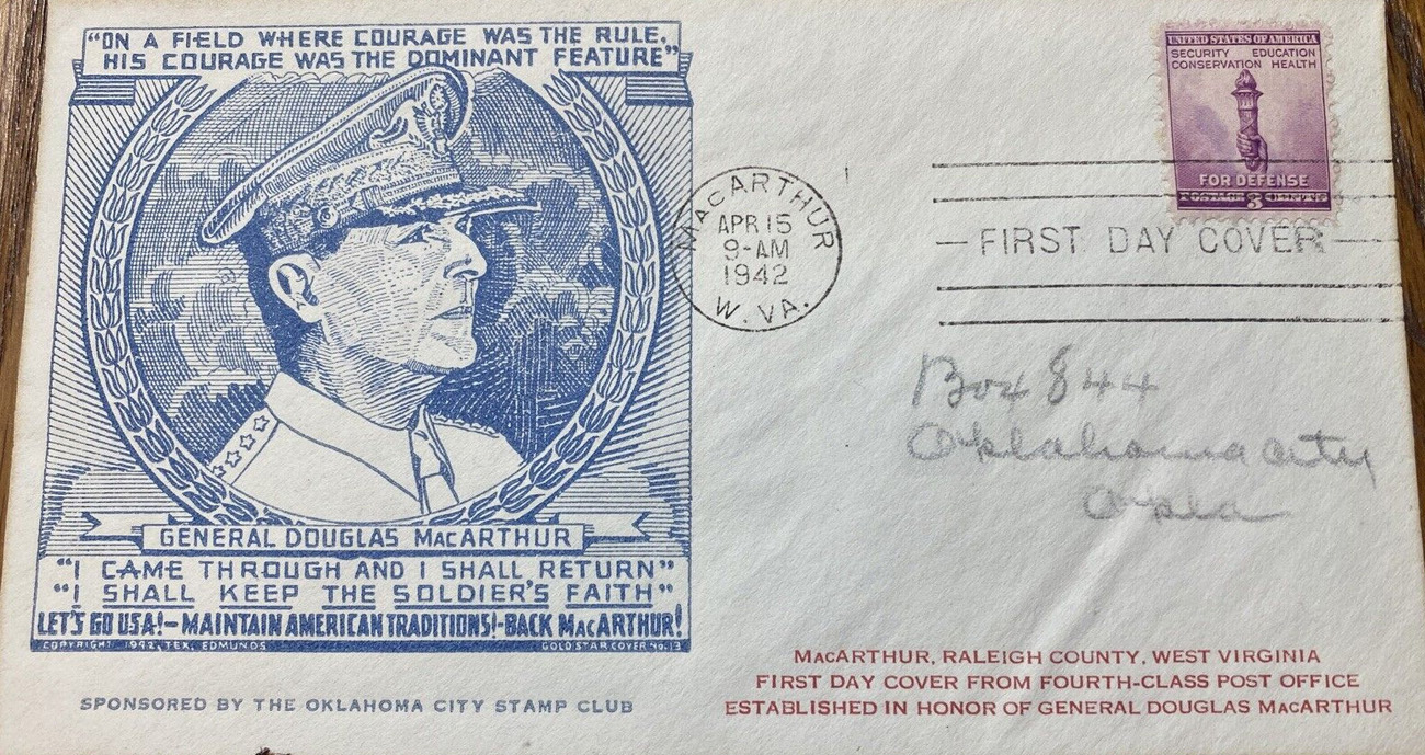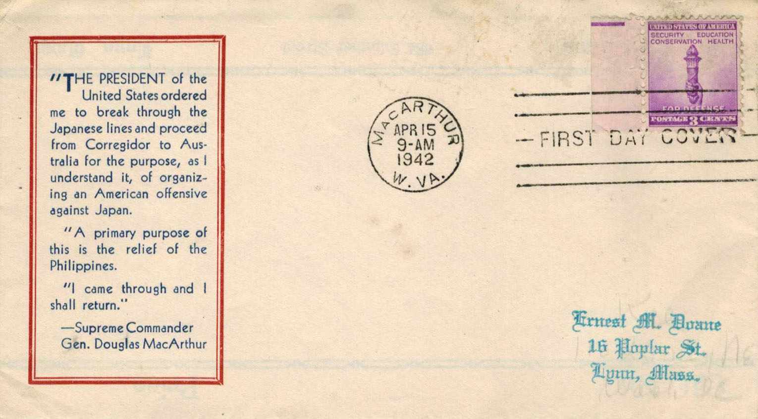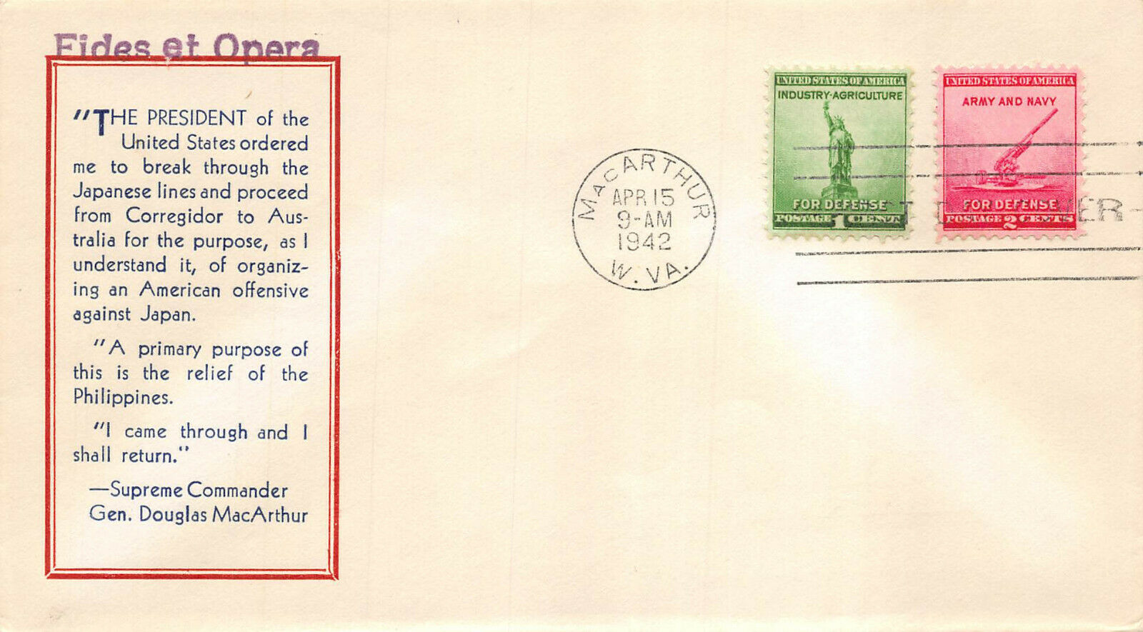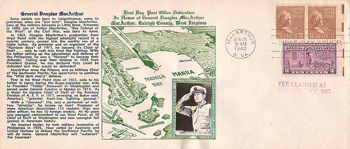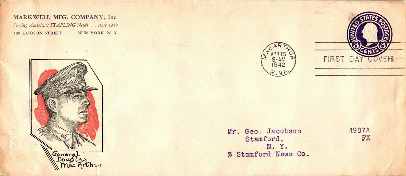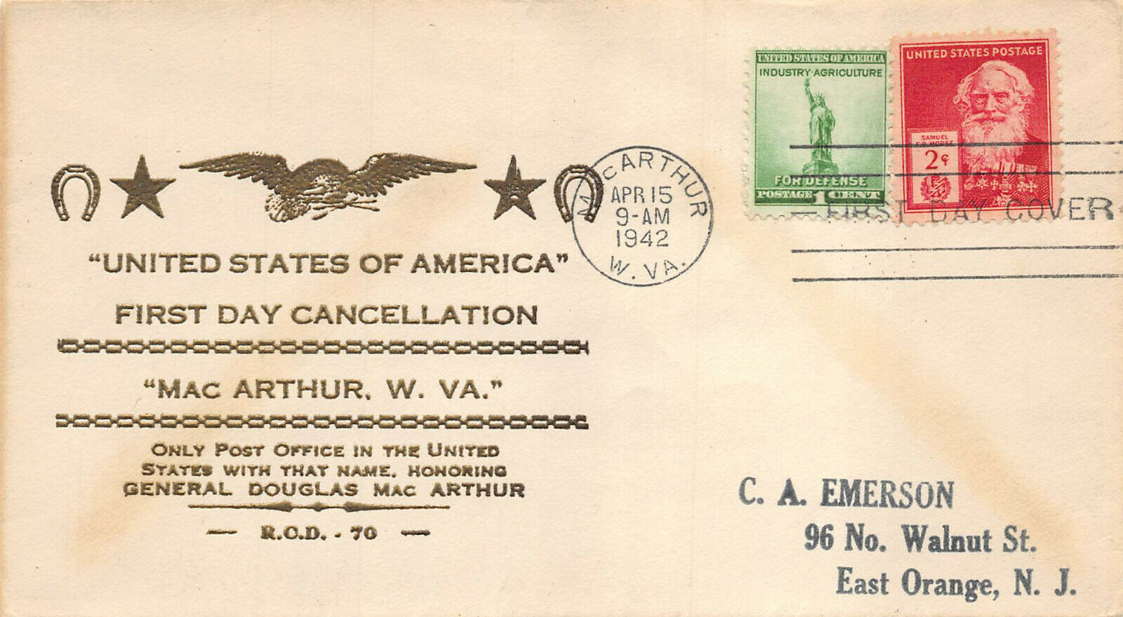 "April 15, 1942, MacArthur (VA) First Day Covers" [Sic (WV), Post Office Dedication]