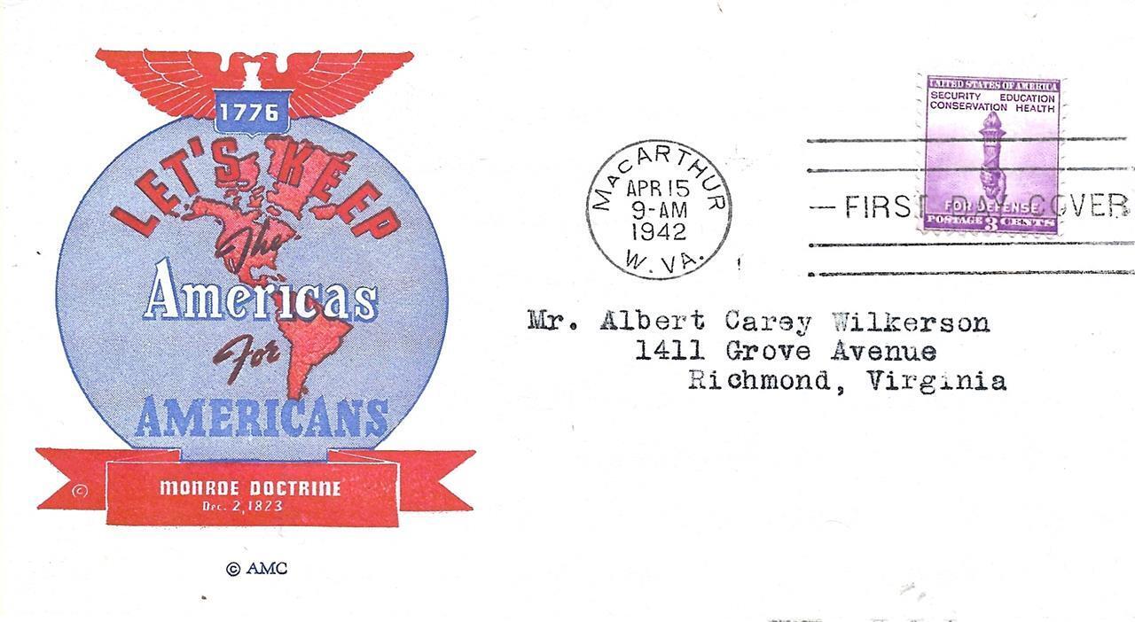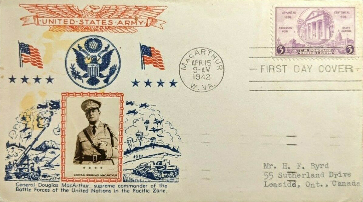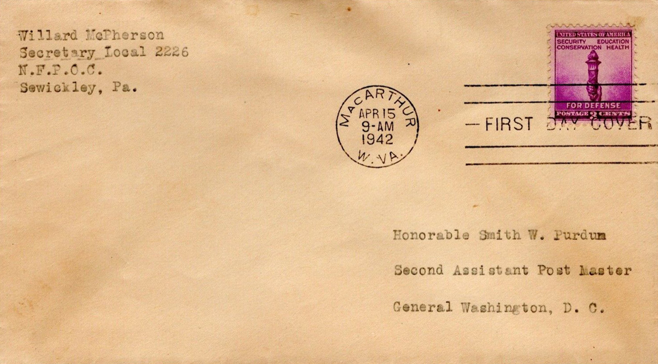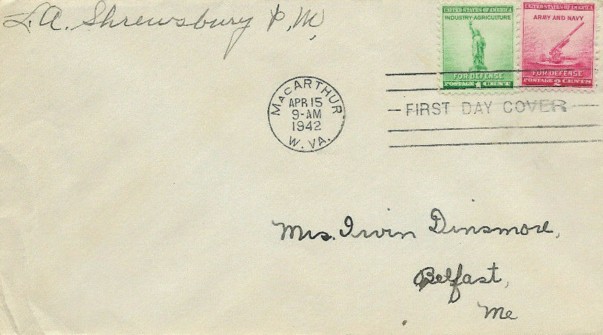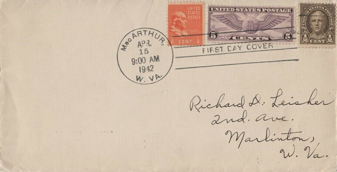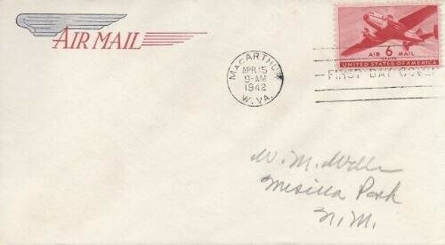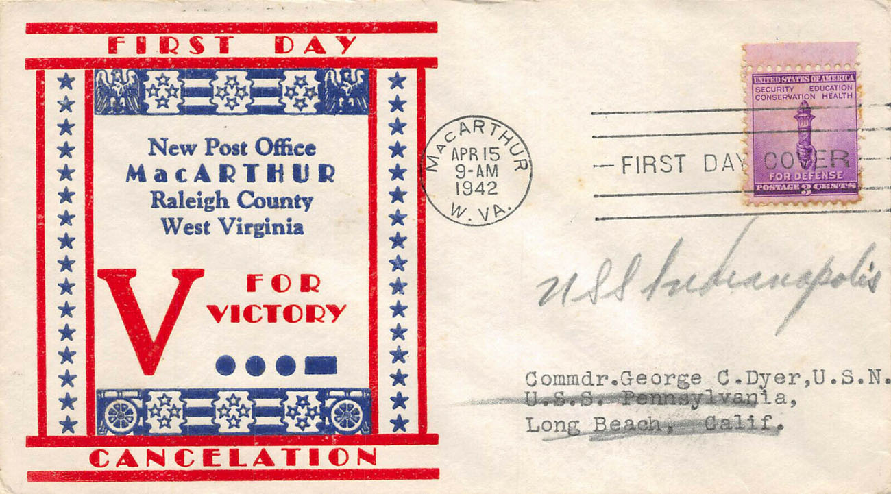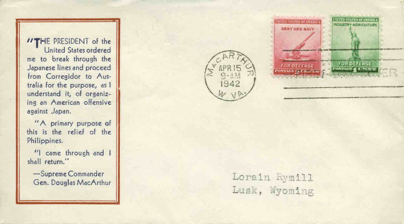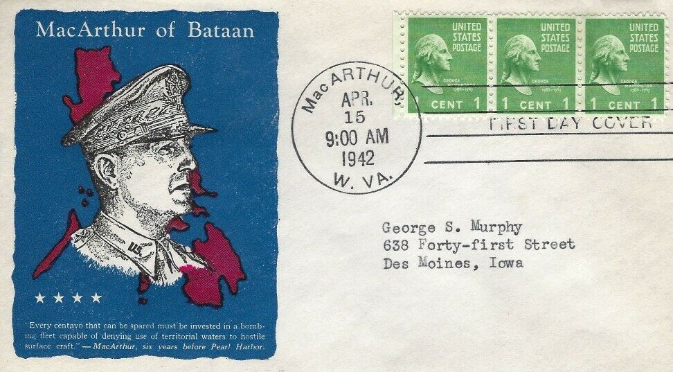 "April 15, 1942, MacArthur (VA) First Day Covers" [Sic (WV), Post Office Dedication]