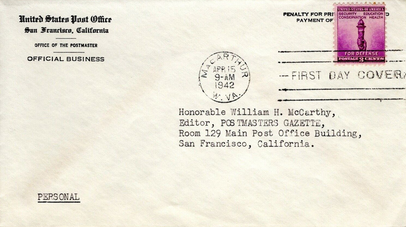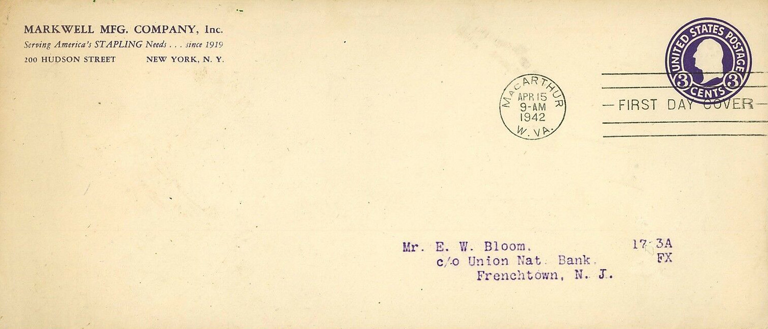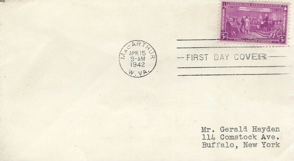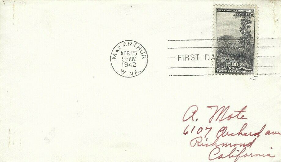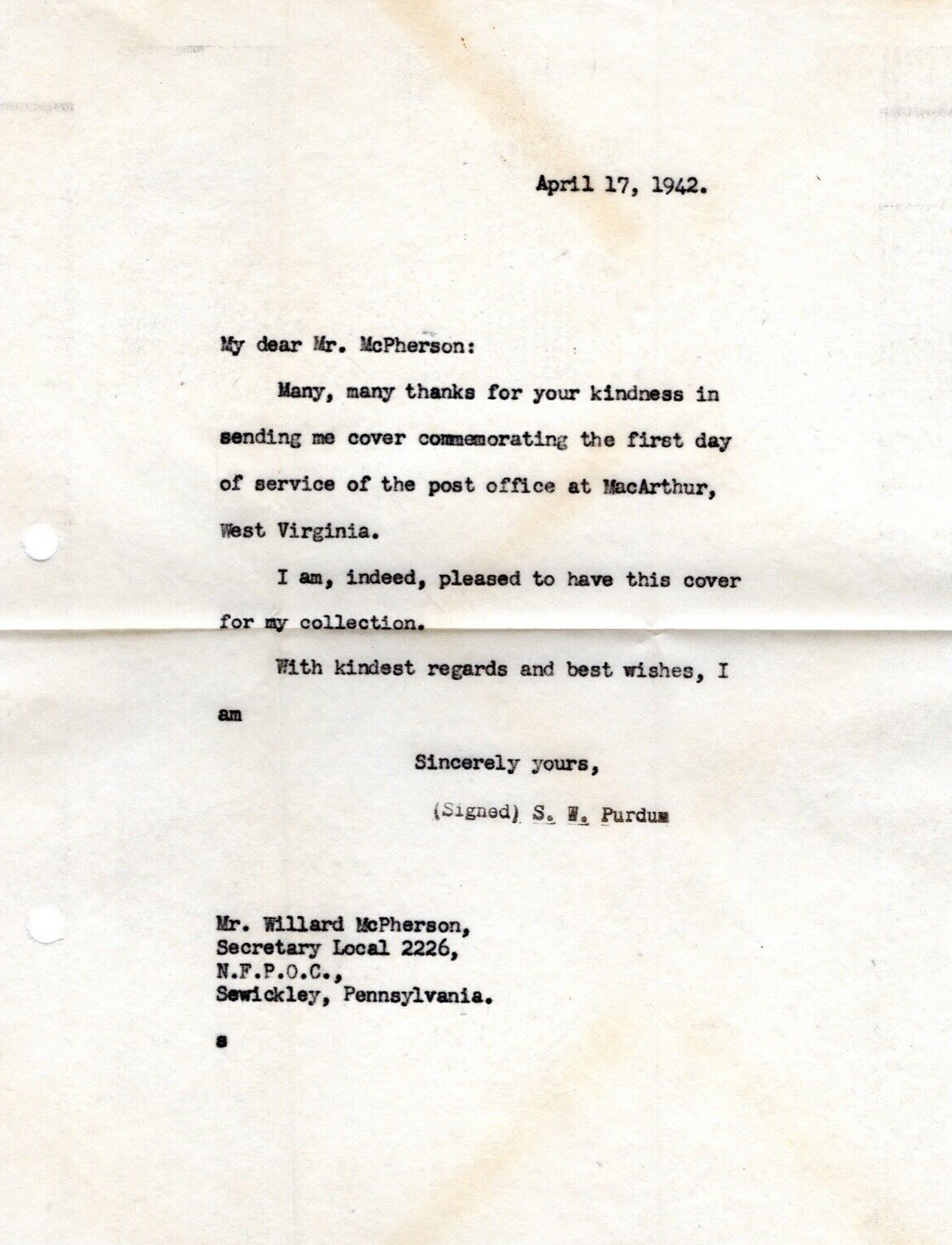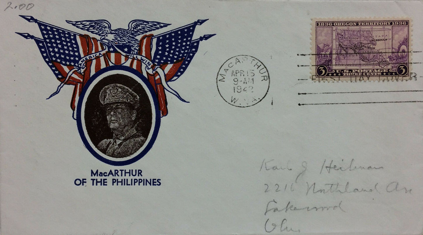 "April 15, 1942, MacArthur (VA) First Day Covers" [Sic (WV), Post Office Dedication]