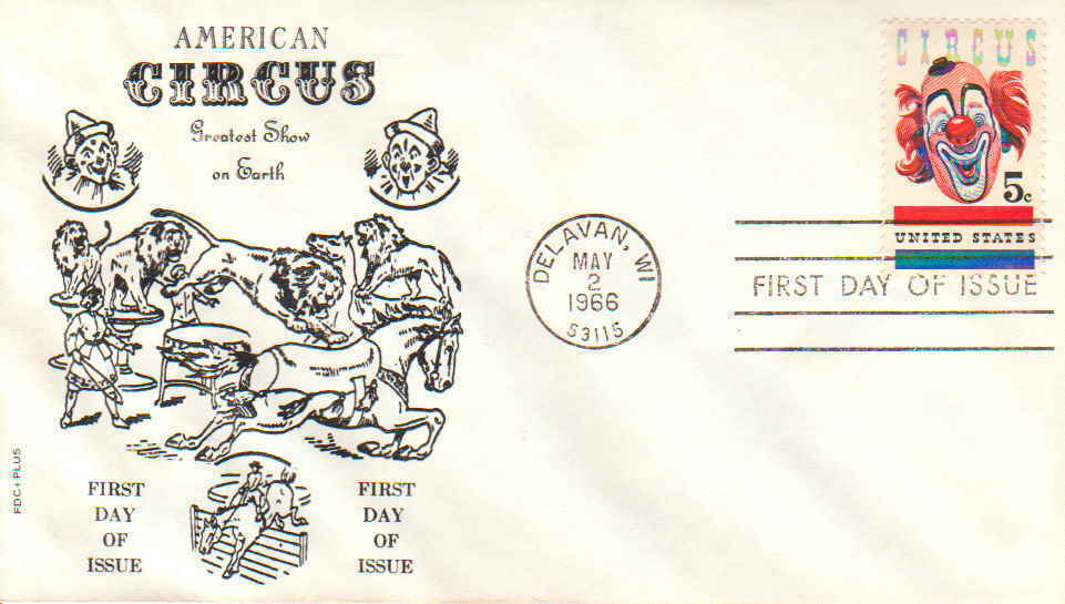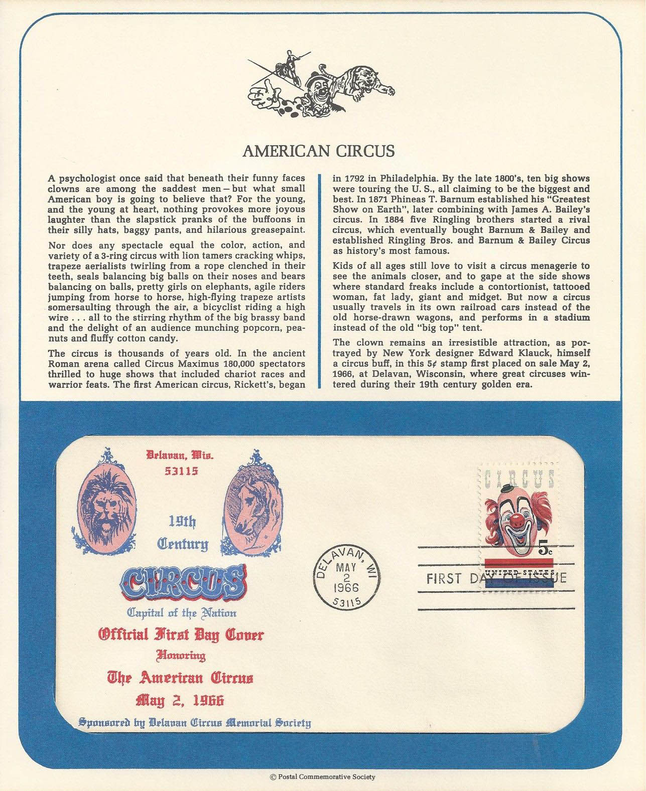 - U.S. Scott #1309-13, p. 236, 1st Delavan Circus Memorial Society -- {A}