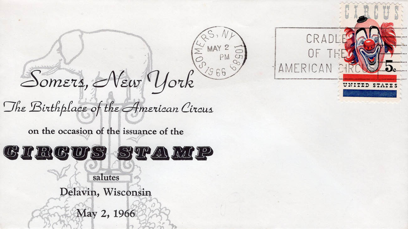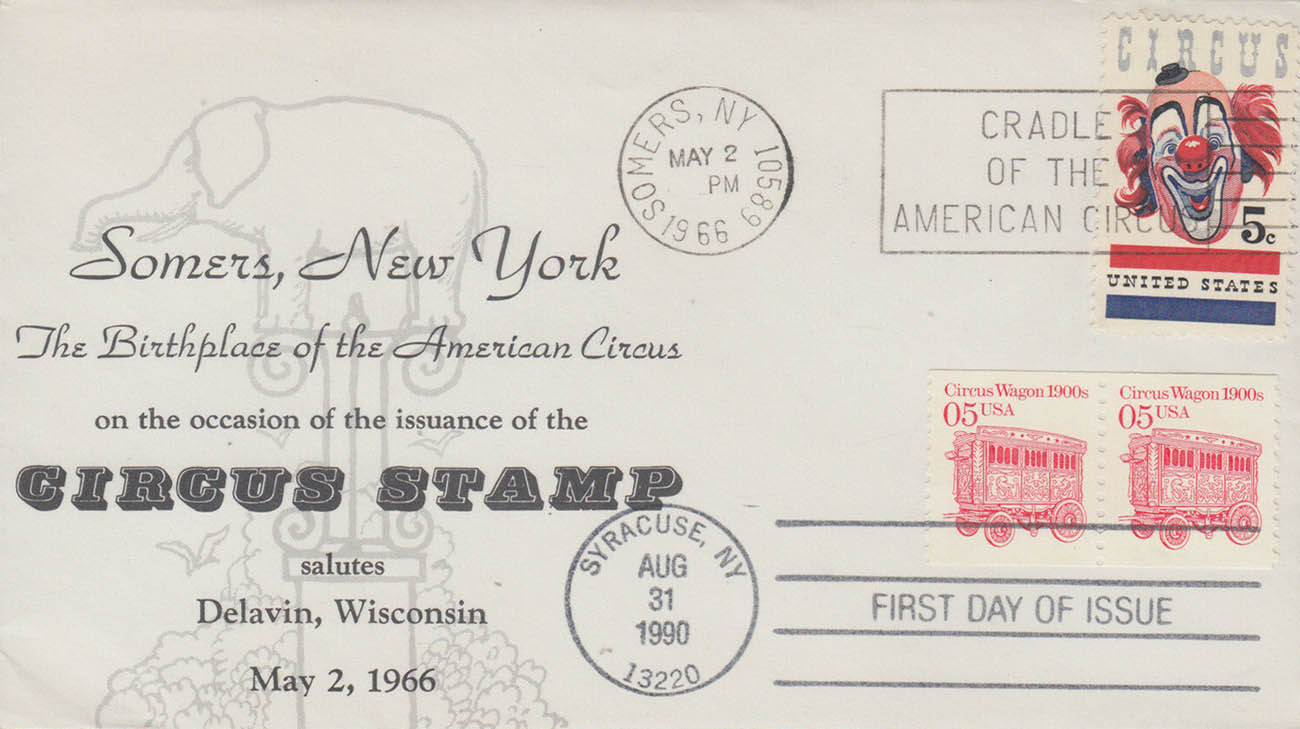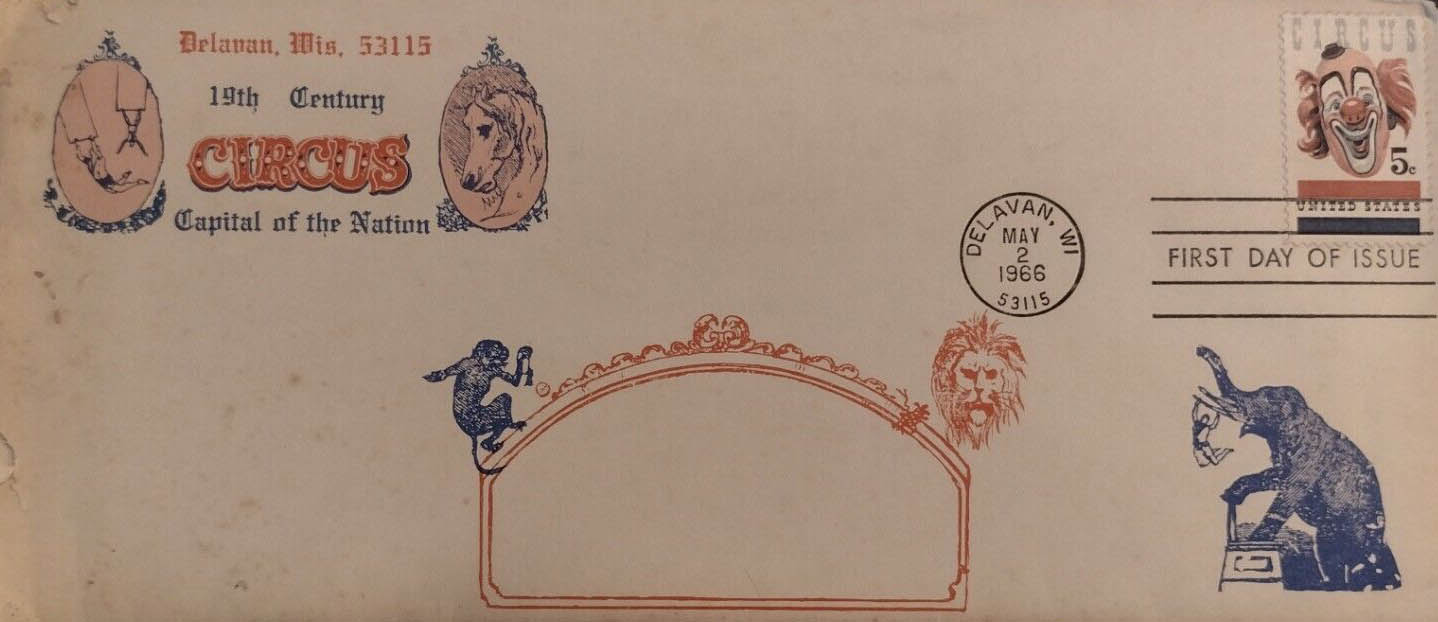 variety #1 on #10 envelope with added 6-17-1970 slogan cancel "1870 Centennial 1970 / P.T. Barnum Circus / Delavan, Wis."