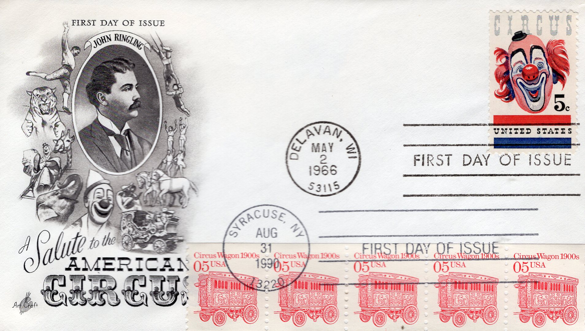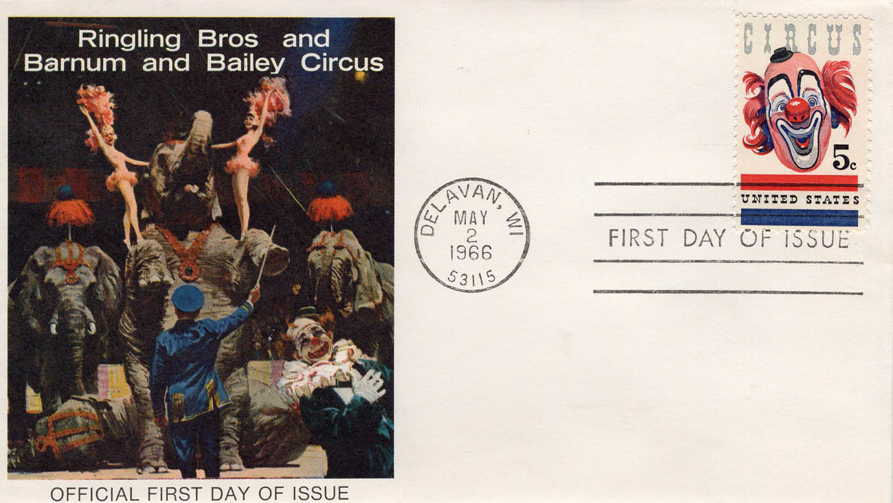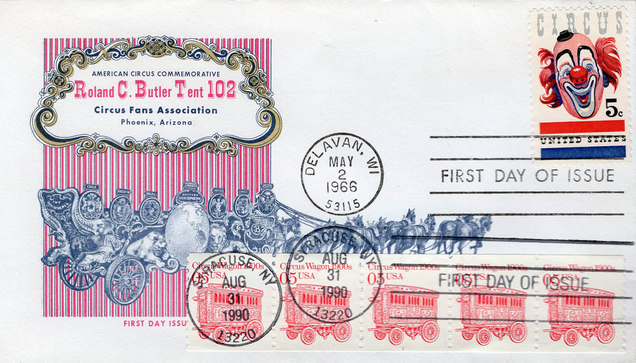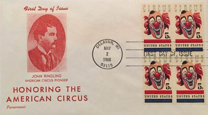 - U.S. Scott #1309-13a, p. 236, 1st Delavan Circus Memorial Society on