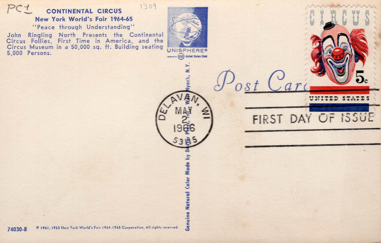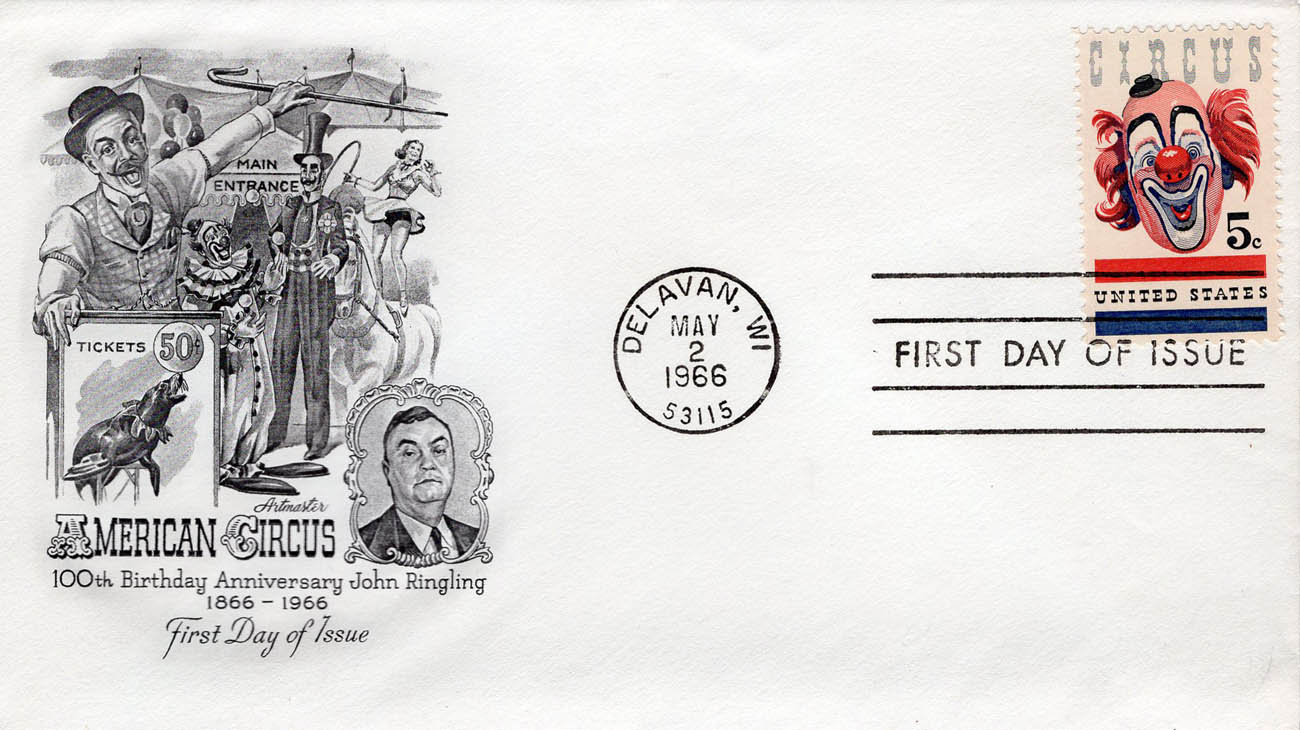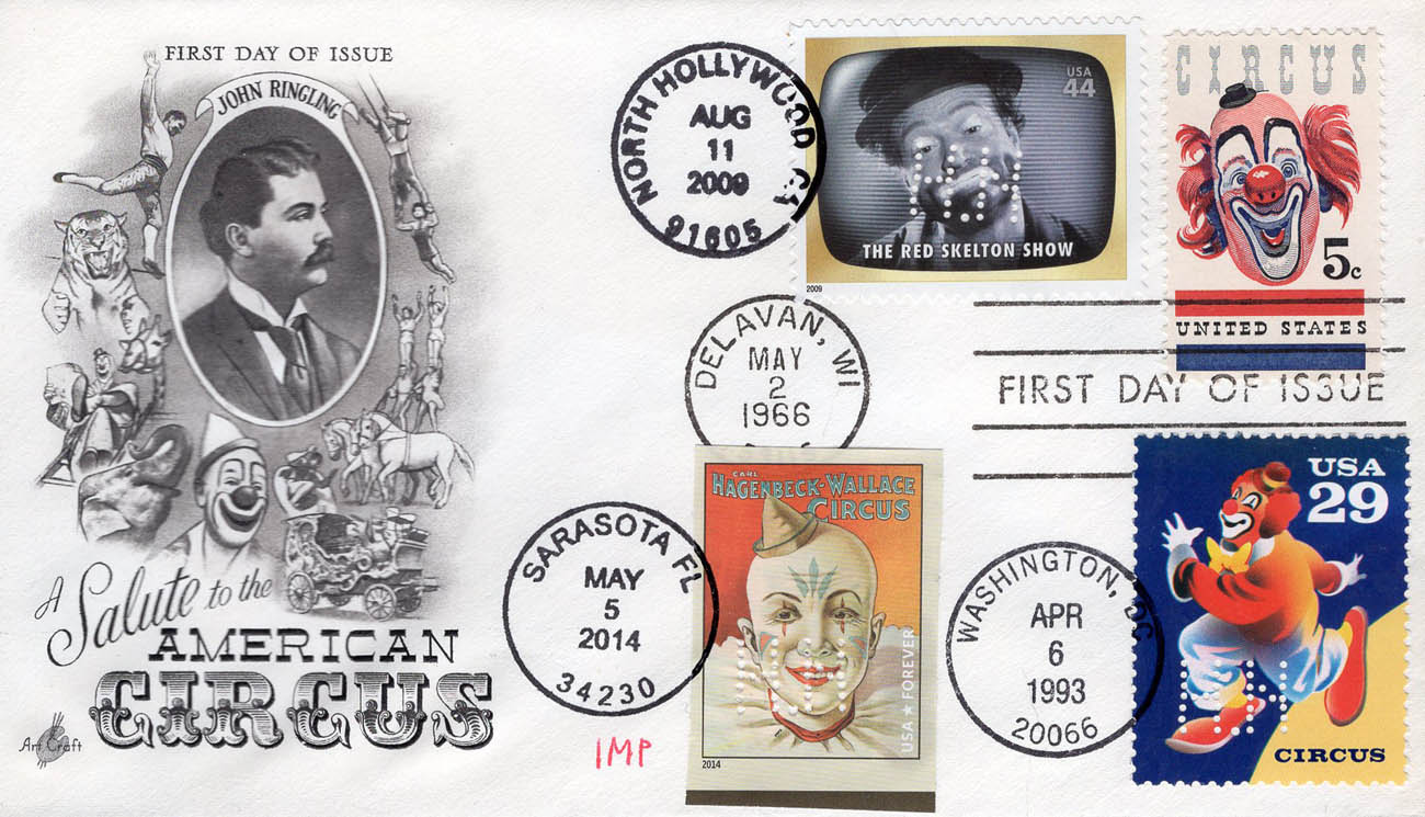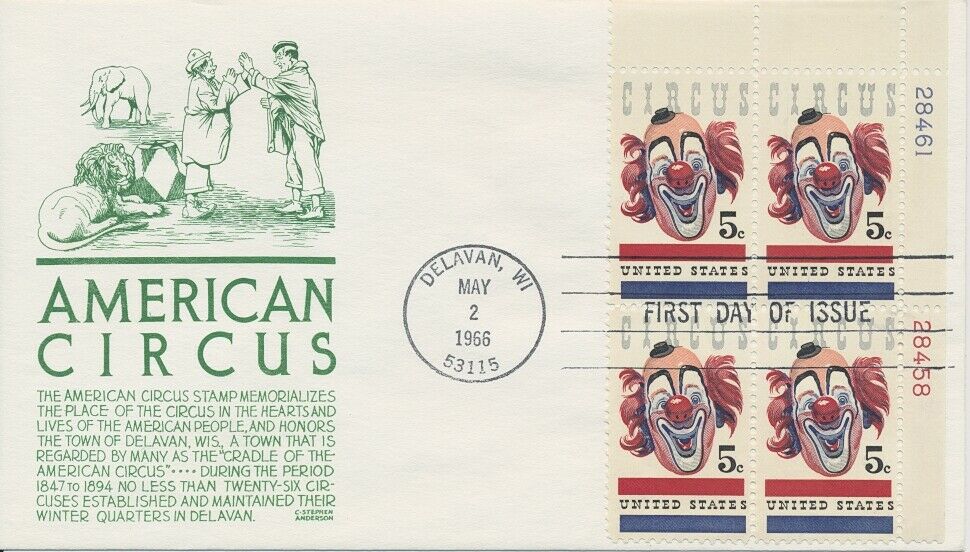 - U.S. Scott #1309-13a, p. 236, 1st Delavan Circus Memorial Society on