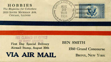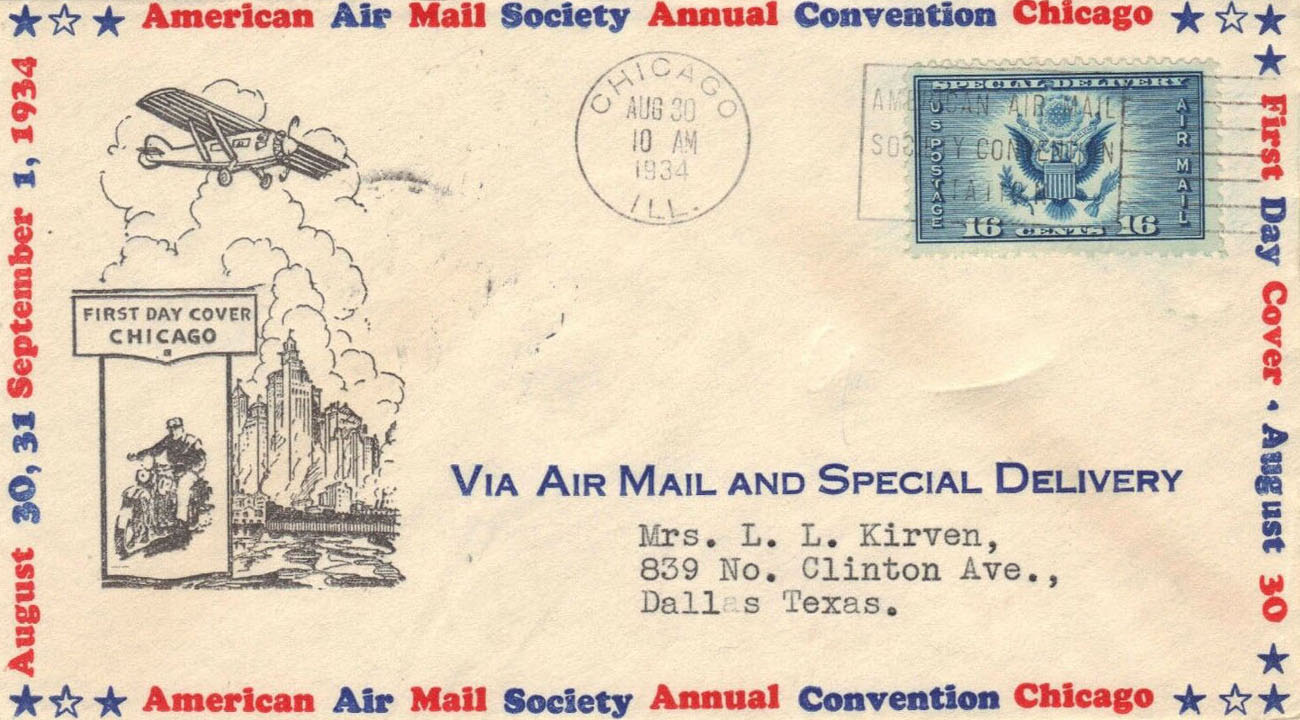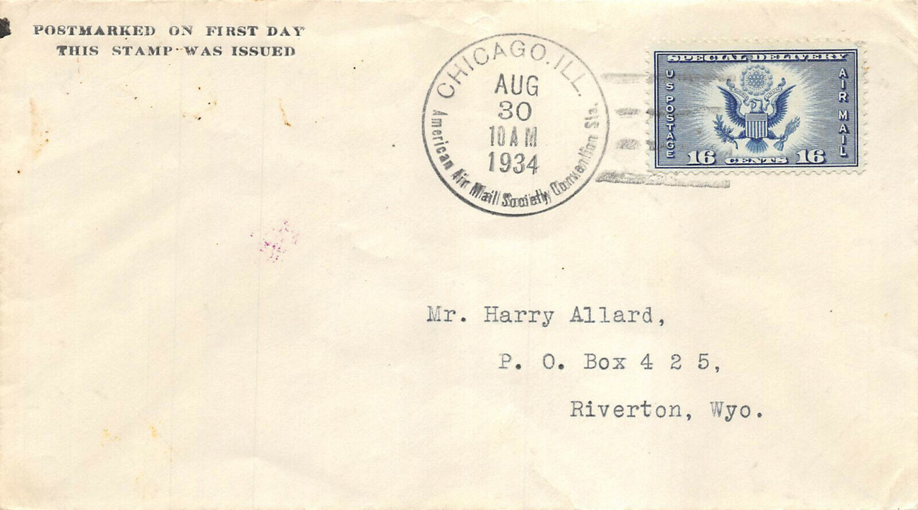 U.S. Scott #CE1 was issued on 8-30-1934 at Chicago, IL - (16¢)