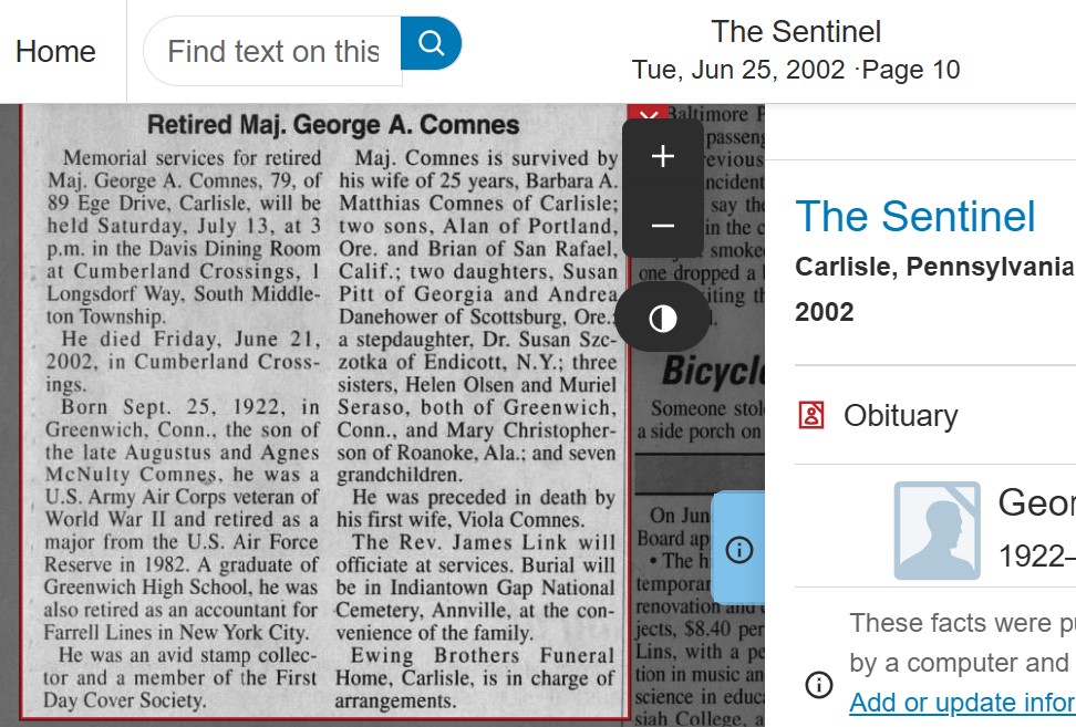 If the birth date does not include mm-dd, it either was not mentioned in the source, or the birth year may be a calculation from, e.g., "she died at age 80". Pages marked with "bio" are FIRST DAYS' special "Closed Album" obituary or other biography columns which sometimes include a photo.