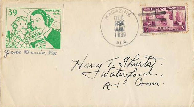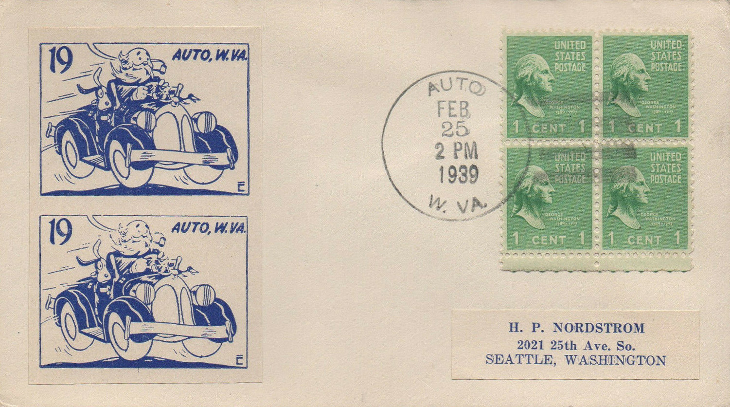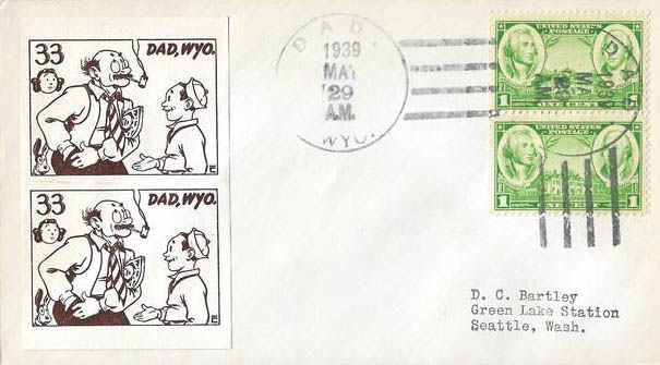 Cachetmaker: John Coulthard @. For a display of many cartoons and ads he drew from the 1930's through 1961, see my bibliography page documenting the stamp and cover sales catalog,