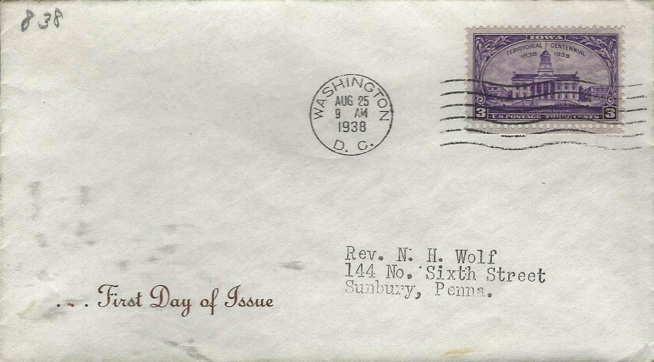 - U.S. Scott #838-GP8 -- 8-24-1938