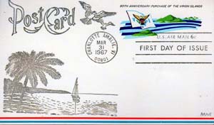 was issued on 3-31-1967 at Charlotte Amalie, U.S. Virgin Islands - (6¢)