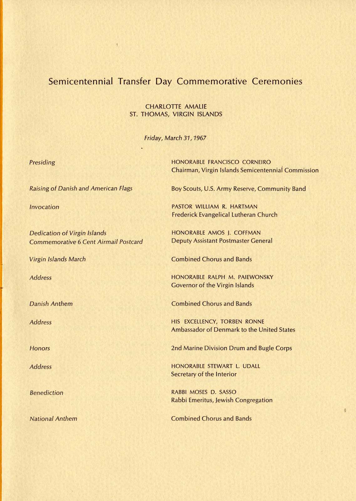 U.S. Virgin Islands - 50th anniversary of the purchase of the Virgin Islands from Denmark
