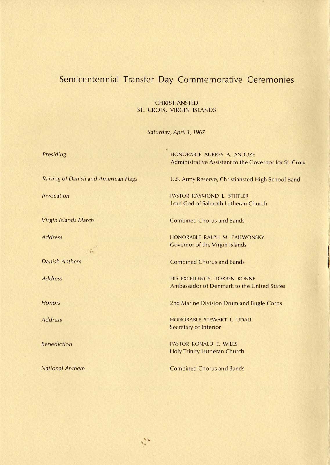 Danish West Indies (D.W.I.) to the United States. At the current VI Legislature, Charlotte Amalie, St. Thomas." The photo is courtesy of