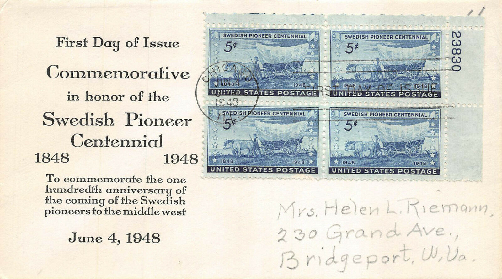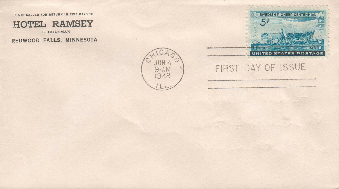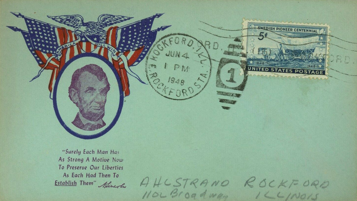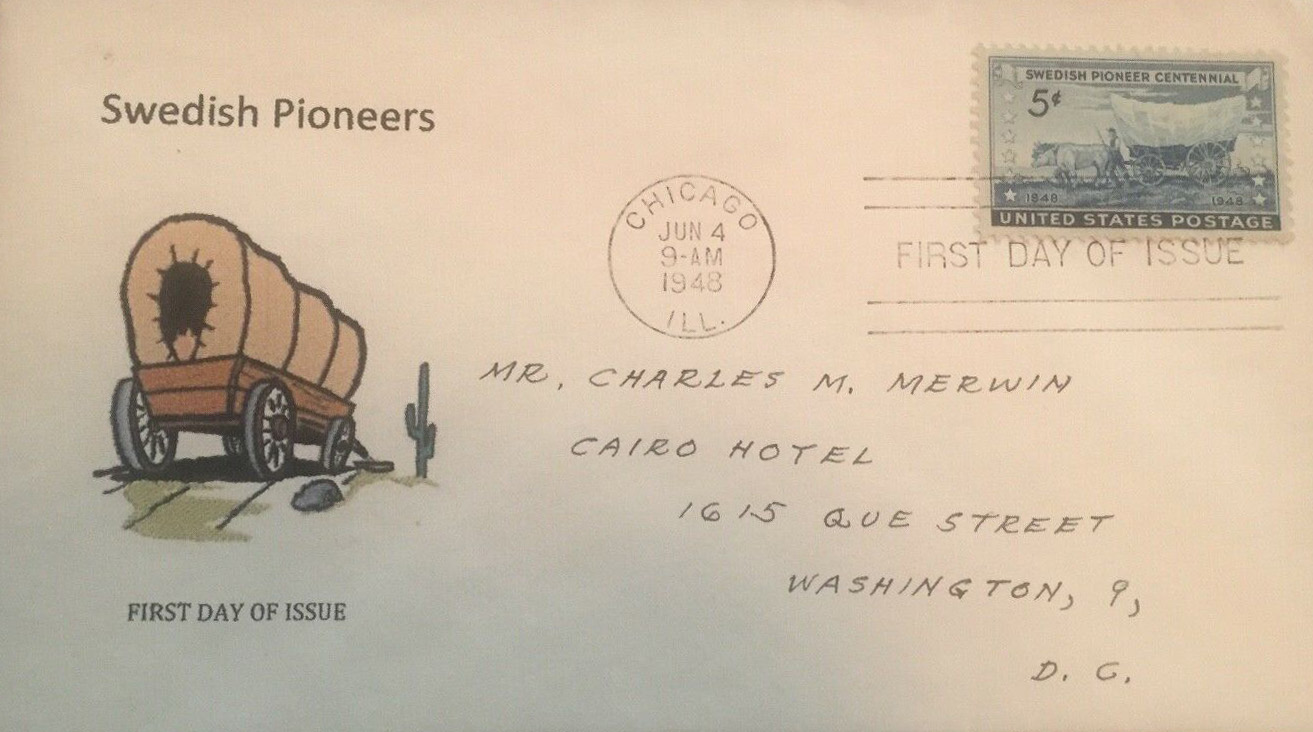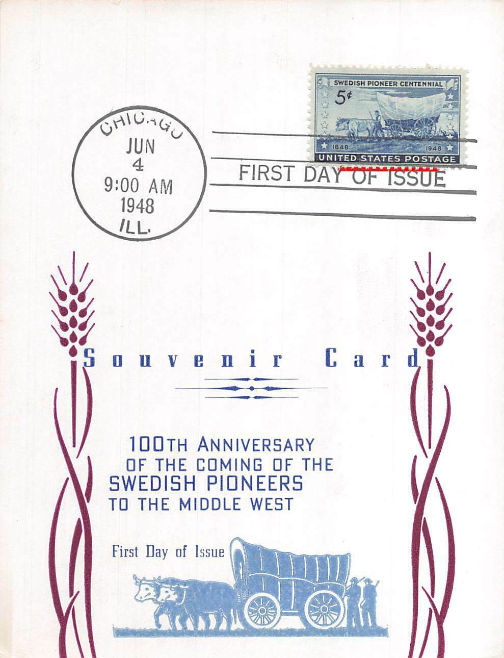- U.S. Scott #958-7, p. 175, 1st Swedish Pioneer Centennial Committee, Rockford, IL (? Hager)