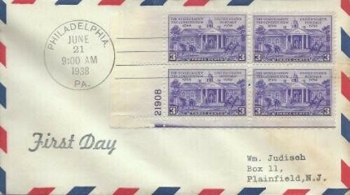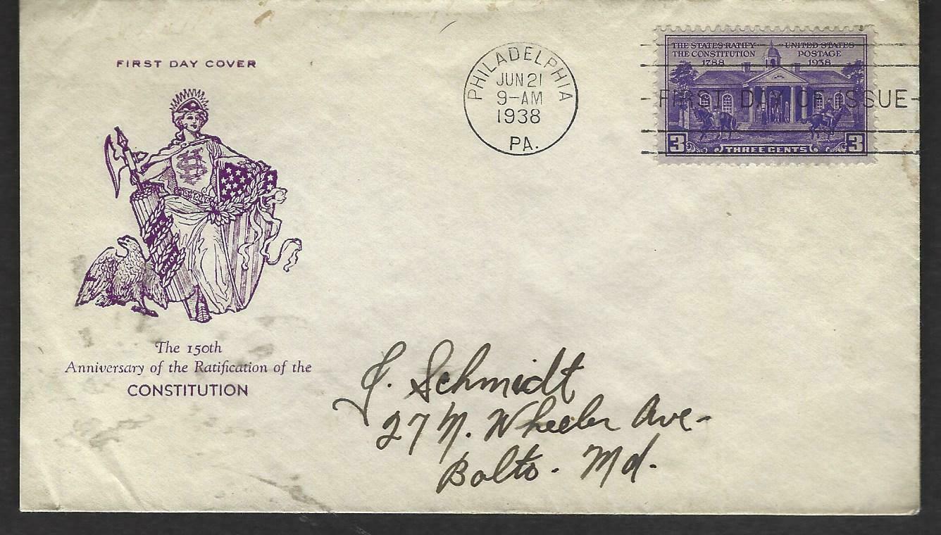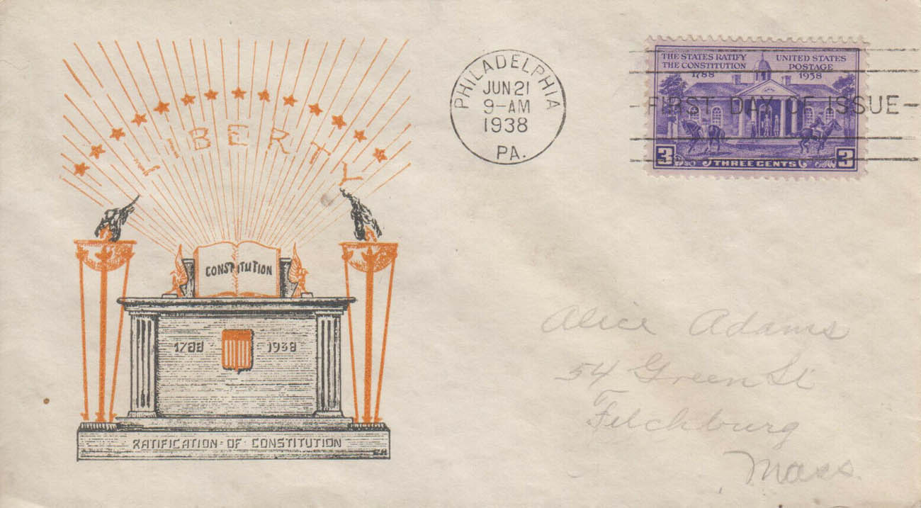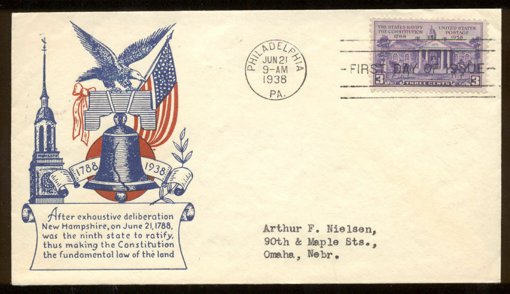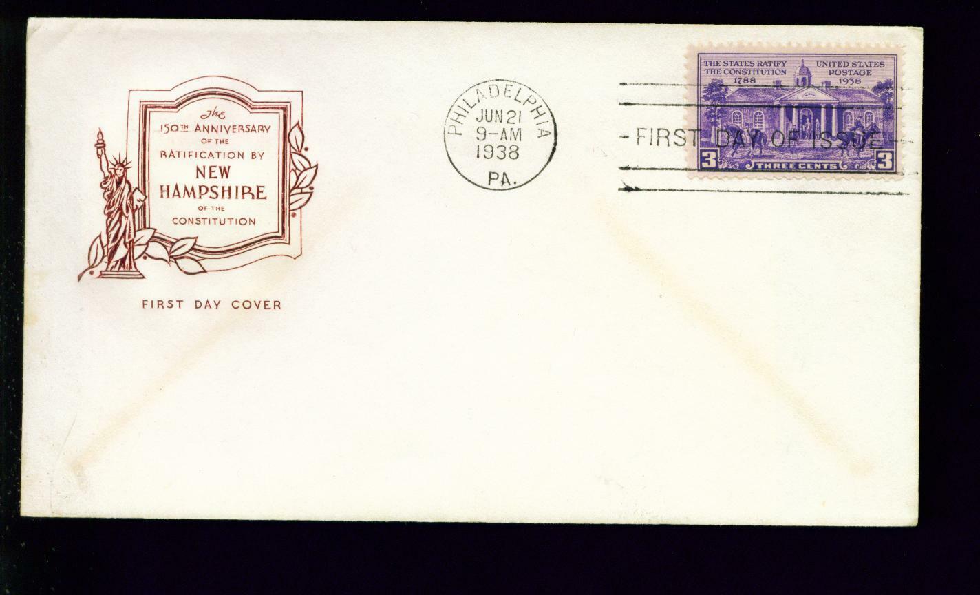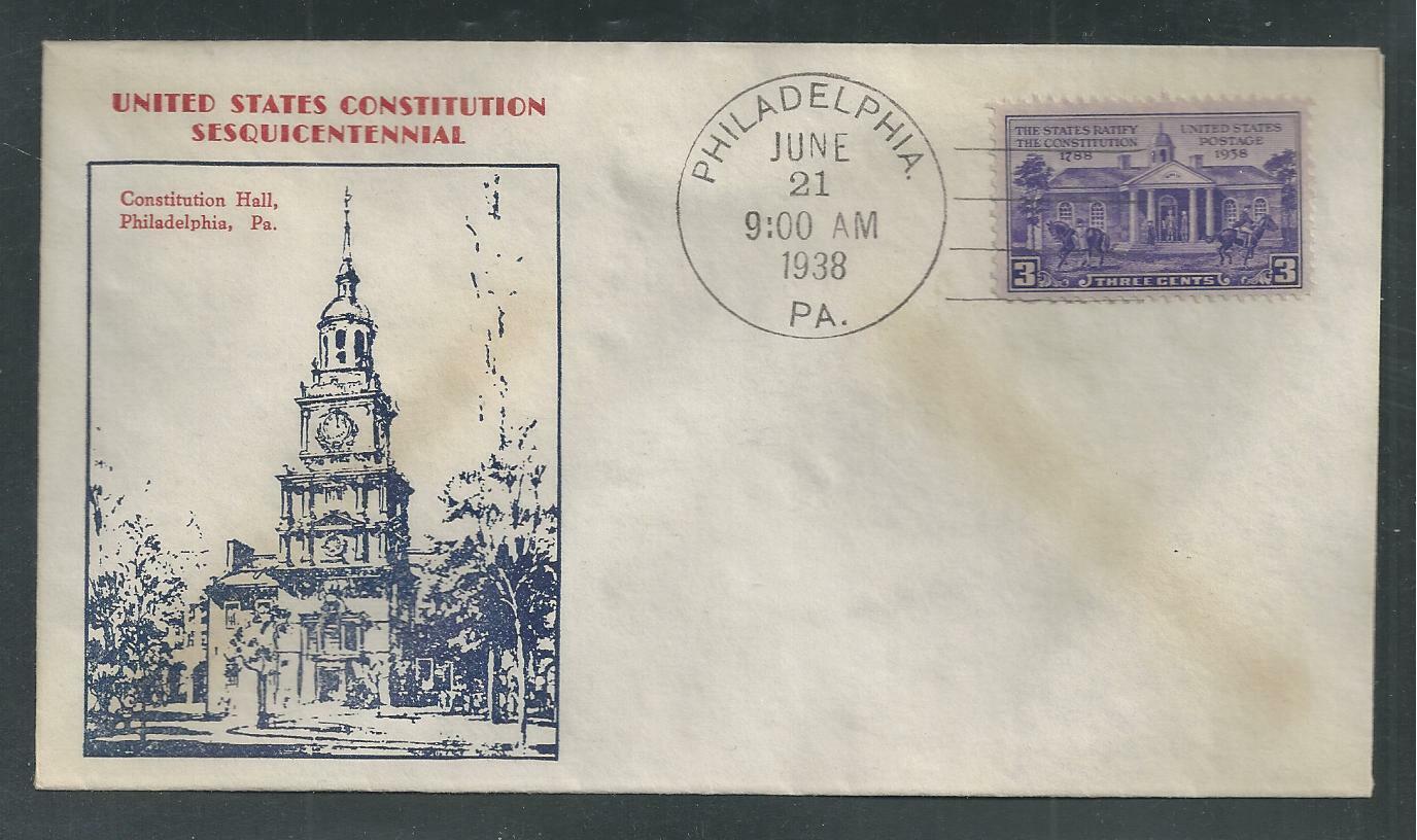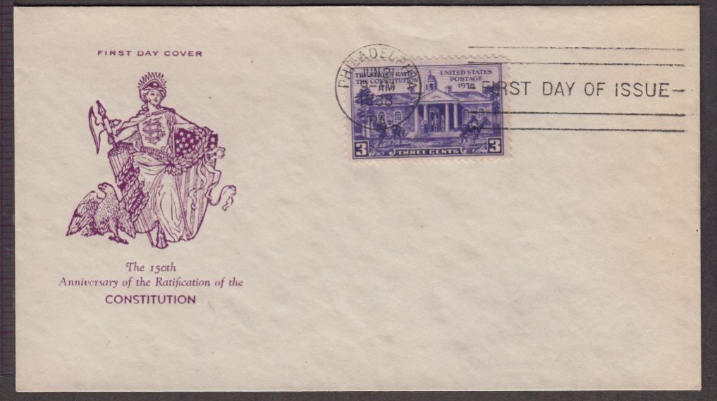 U.S. Scott #835 was issued on 6-21-1938 at Philadelphia, PA - (3¢)