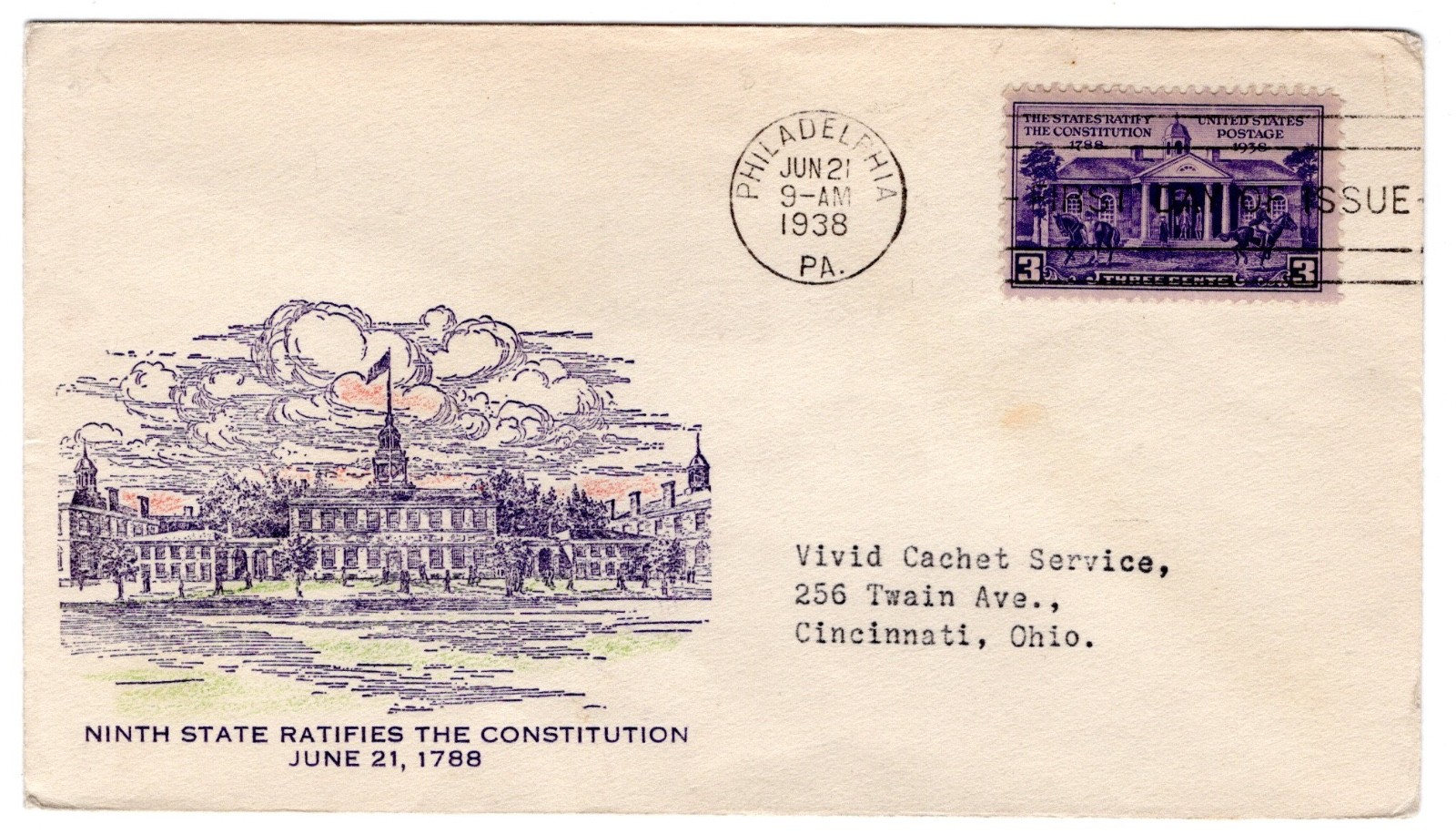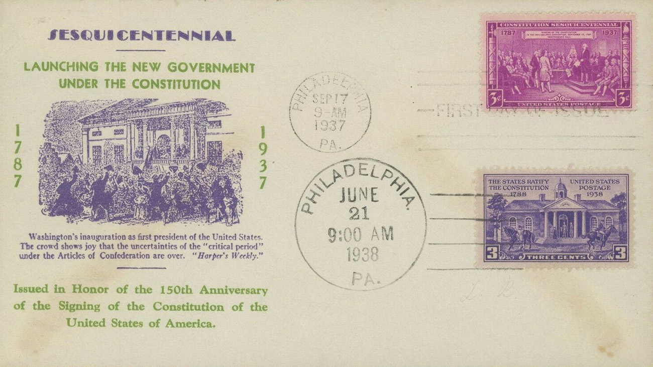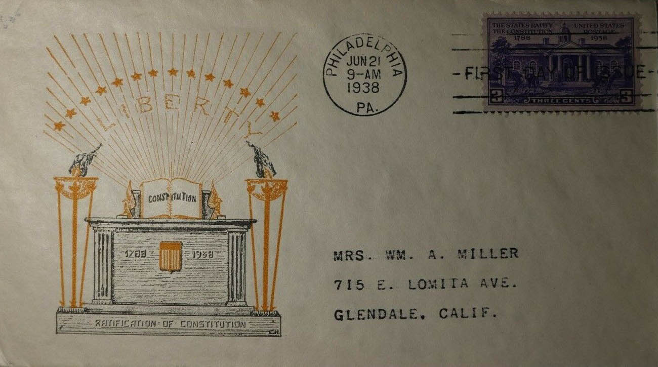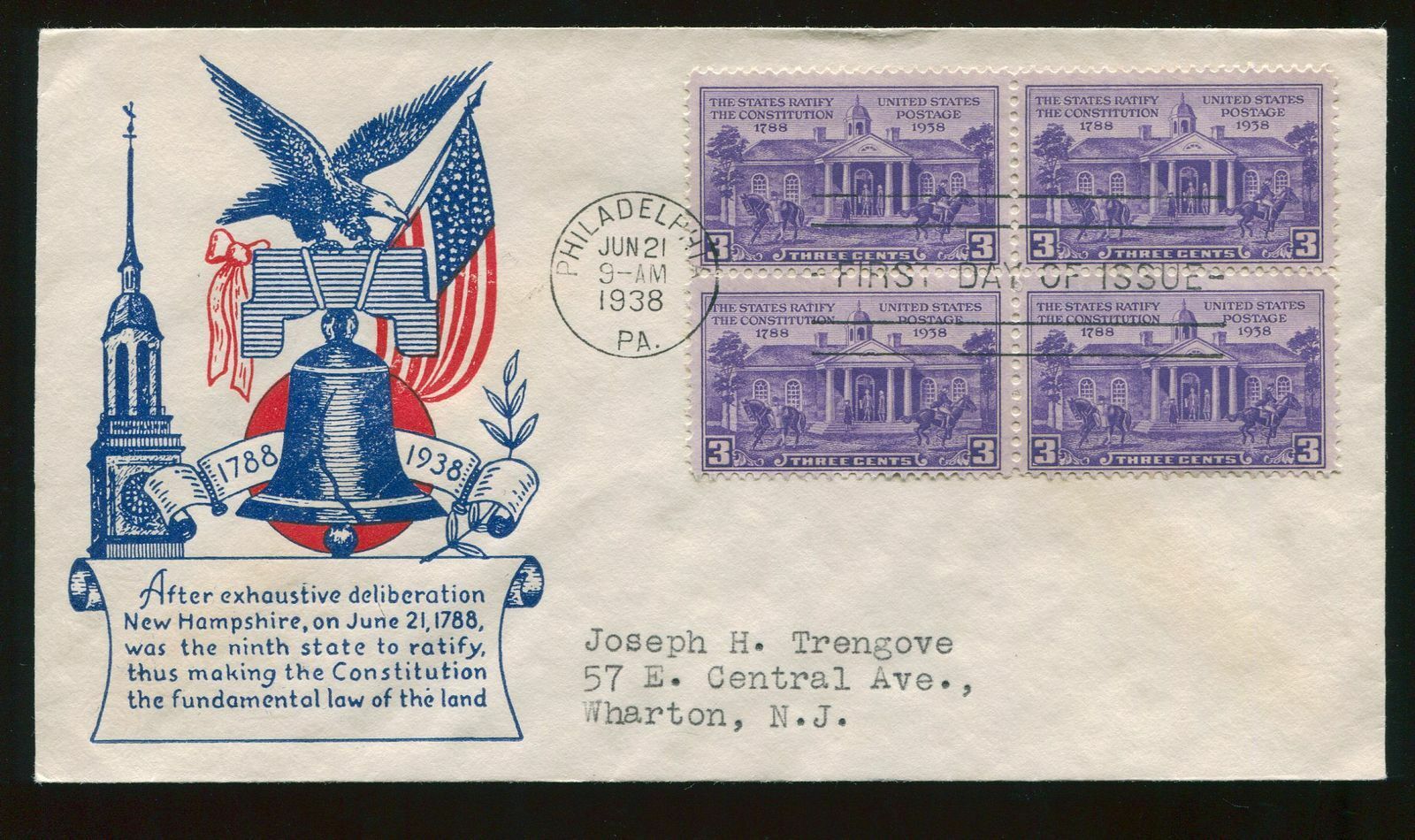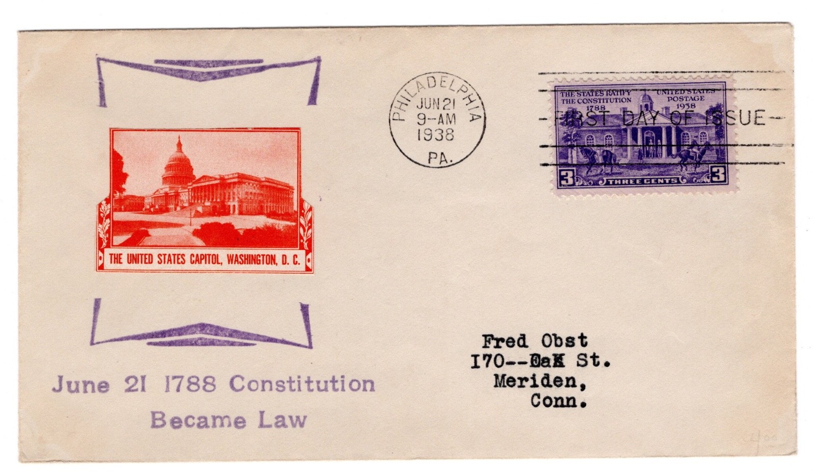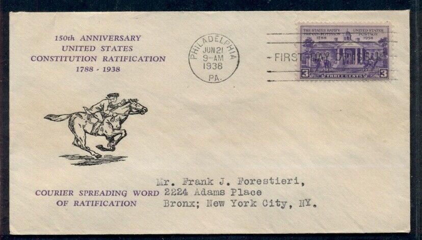 U.S. Scott #835 was issued on 6-21-1938 at Philadelphia, PA - (3¢)