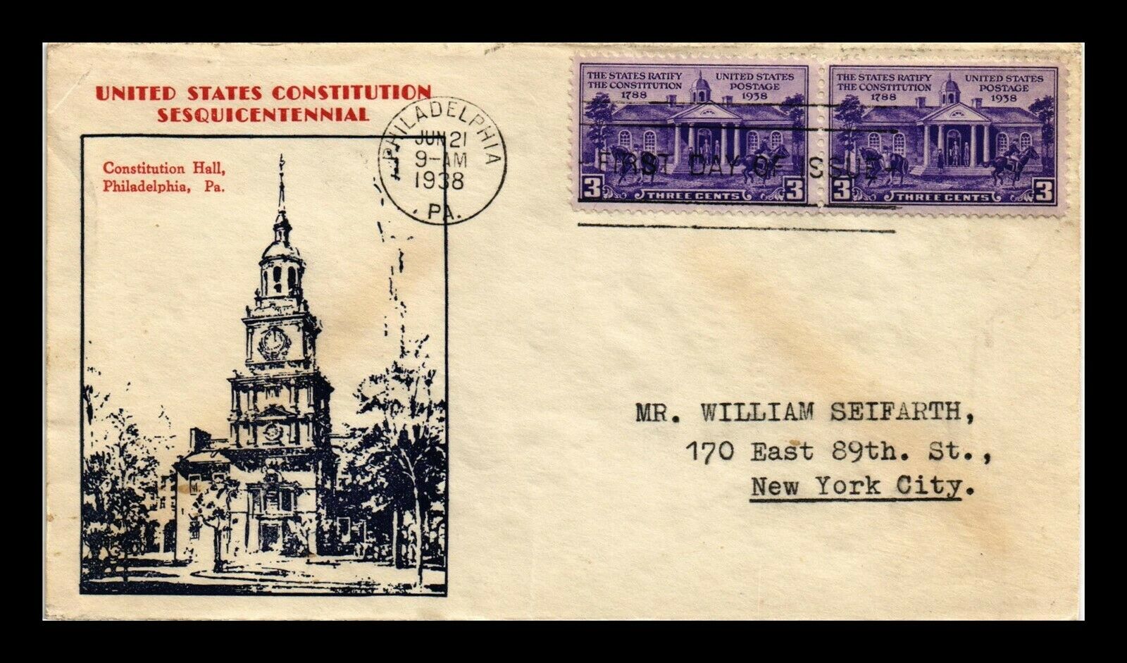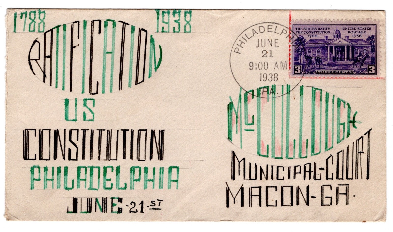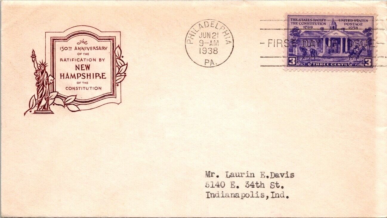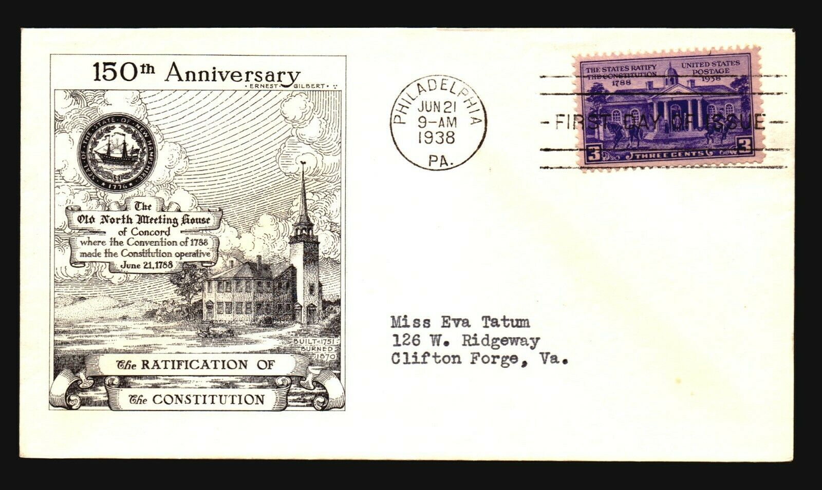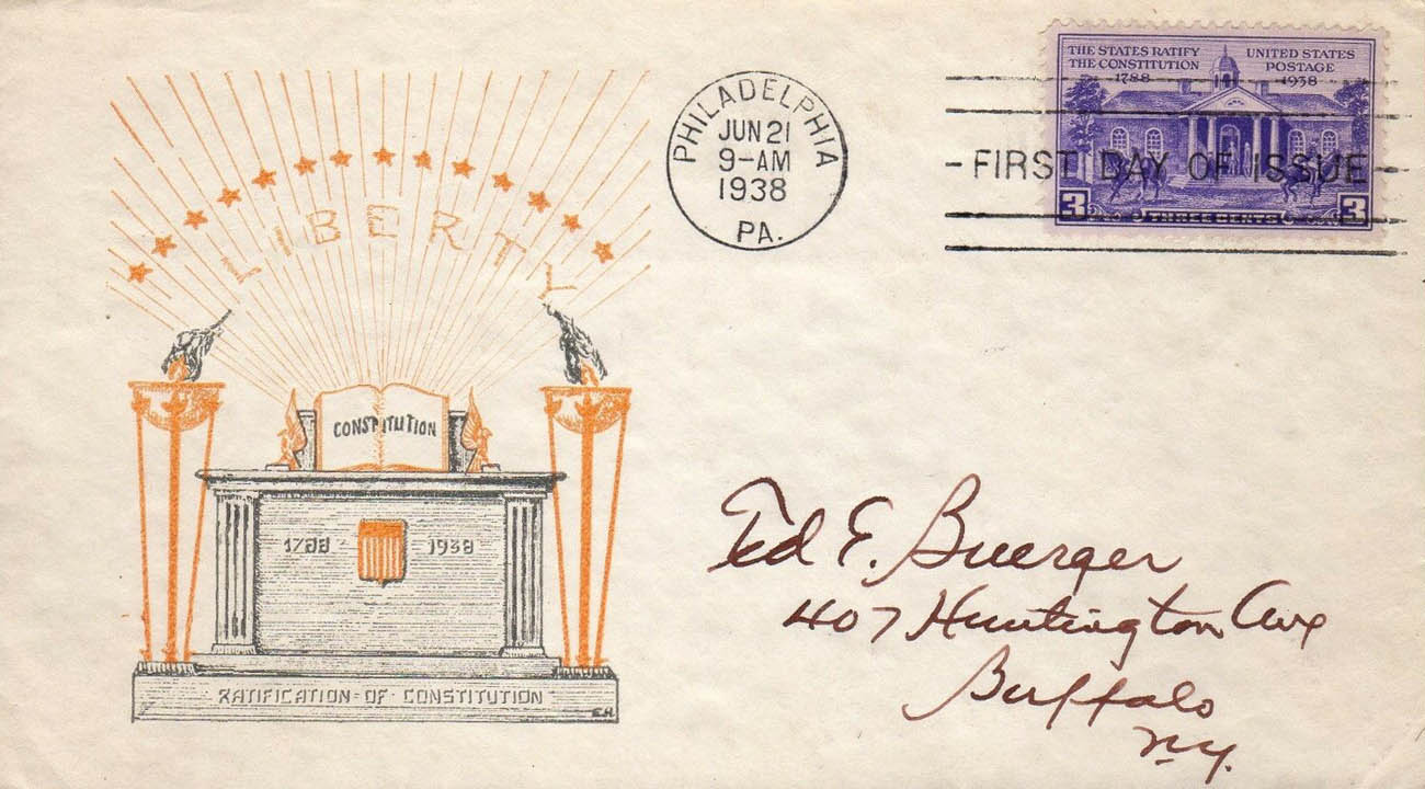 U.S. Scott #835 was issued on 6-21-1938 at Philadelphia, PA - (3¢)