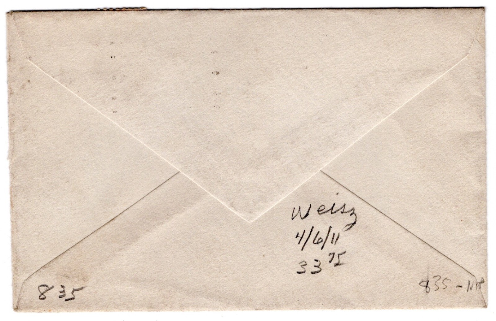 U.S. Scott #835 FDC Cachet List in Planty Order