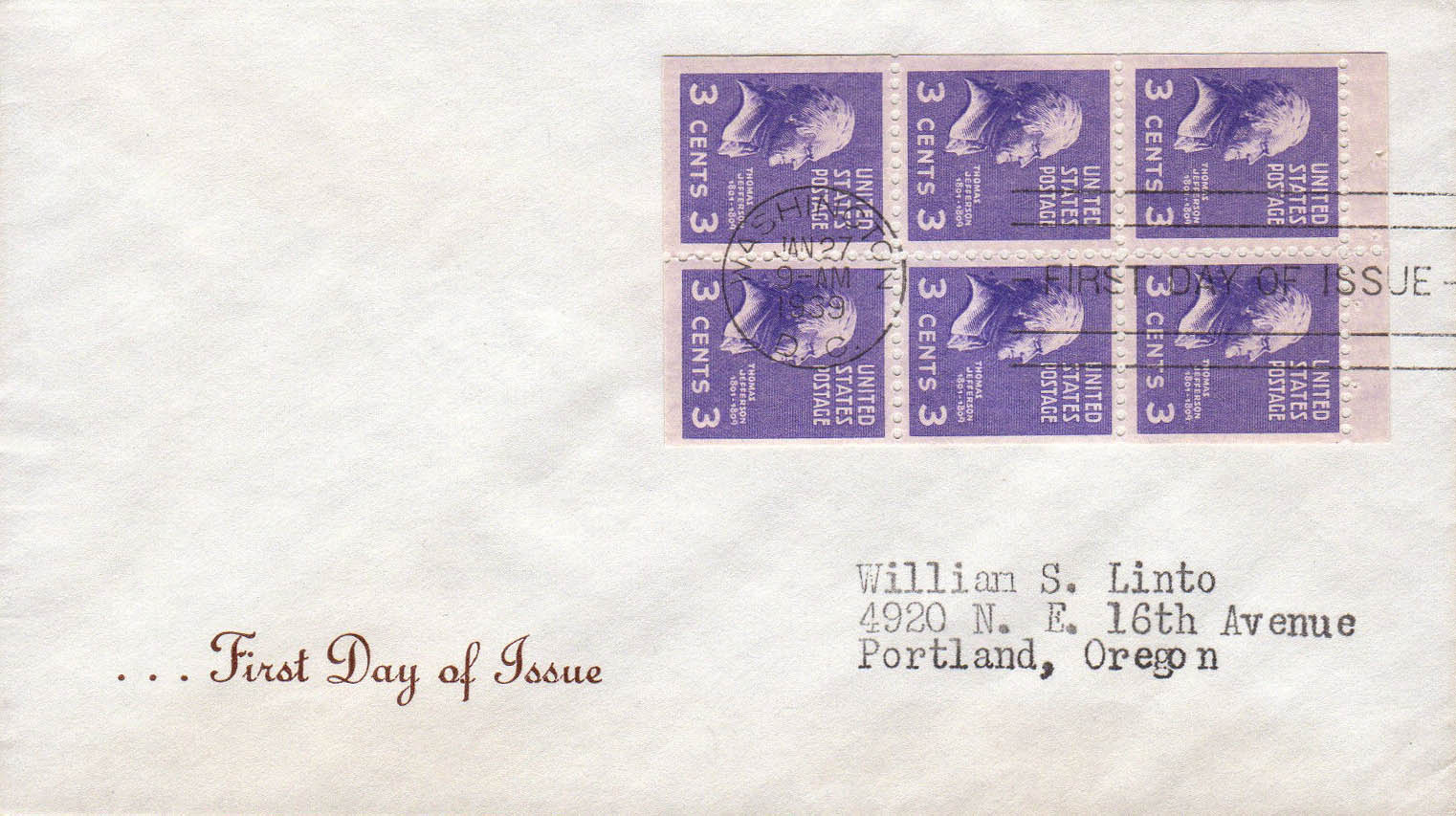 - U.S. Scott #806b-GP27 -- 1-27-1939