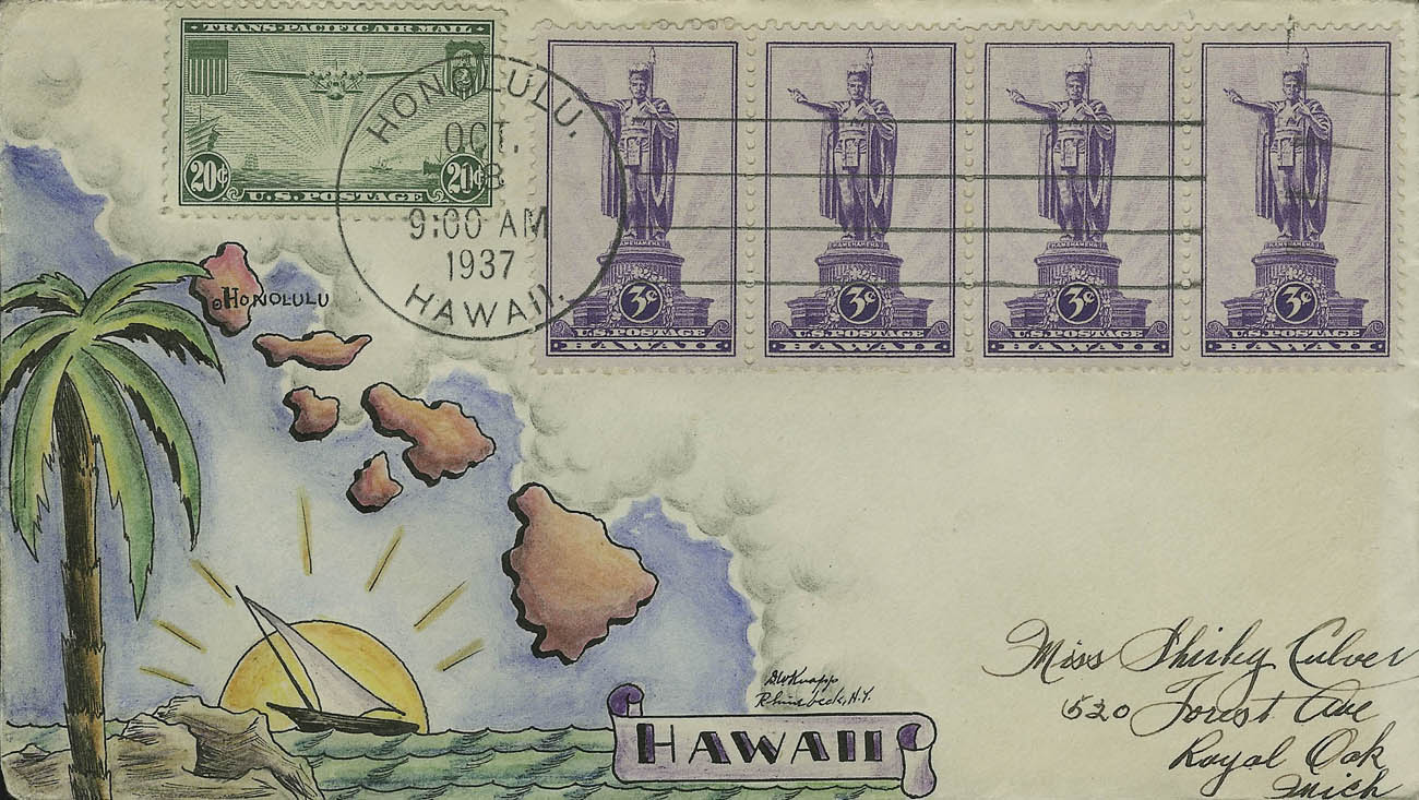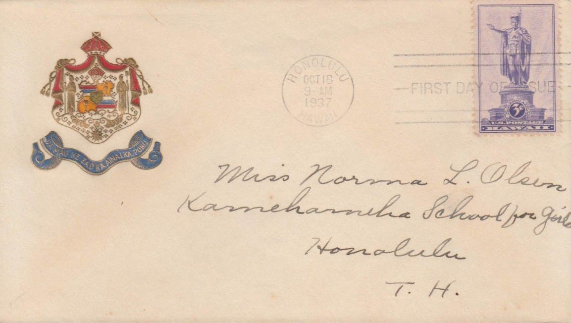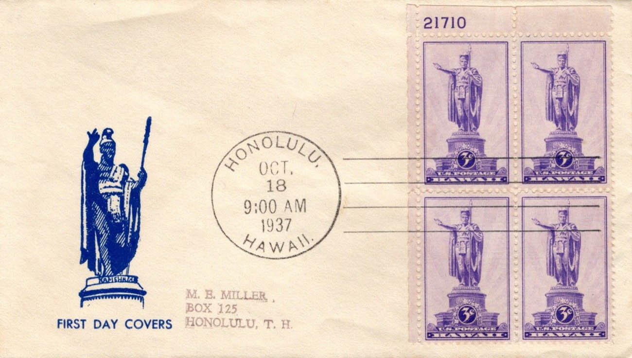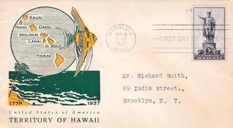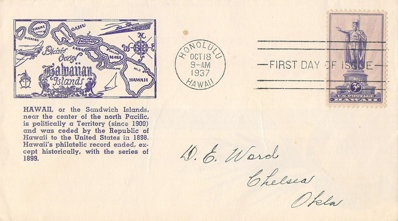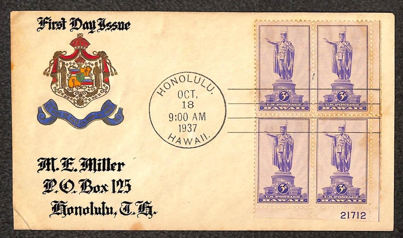 U.S. Scott #799 was issued on 10-18-1937 at Honolulu, HI - (3¢)
