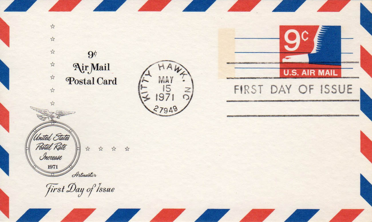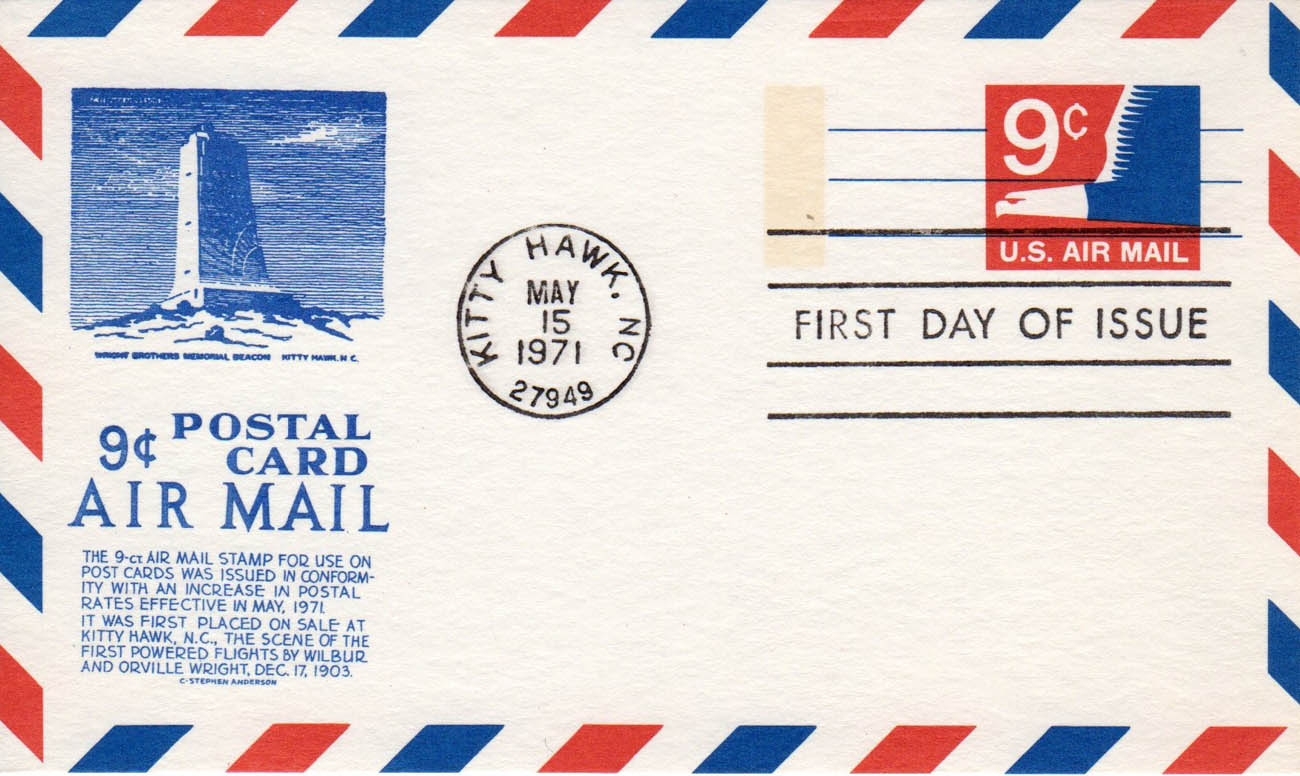 was issued on 5-15-1971 at Kitty Hawk, NC - (9¢)
