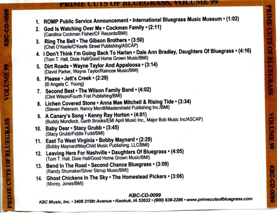 Prime Cuts of Bluegrass, CD Thumbnail Scans [this page]