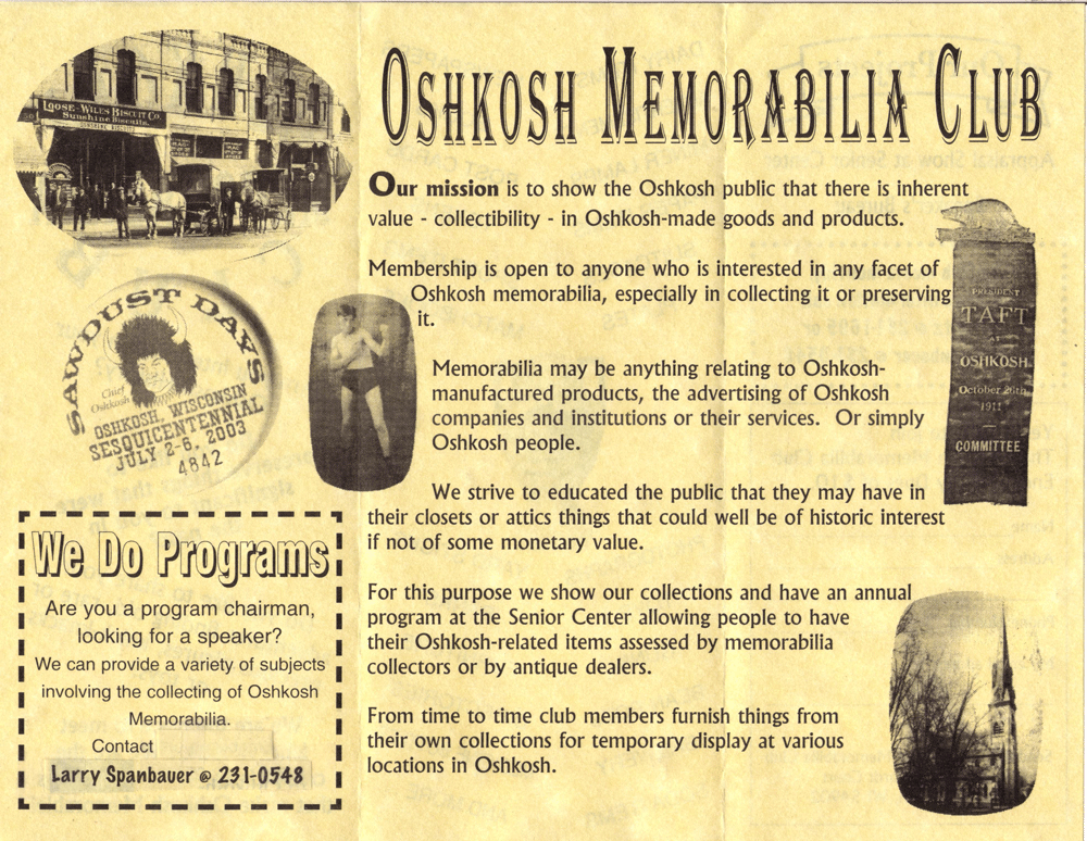 Oshkosh Memorabilia Club.