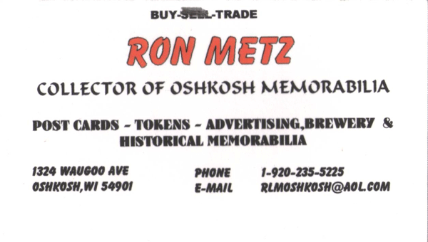 Buy - Trade Collector of Oshkosh Memorabilia Post Cards -- Tokens Advertising,Brewery and Historical Memorabilia |